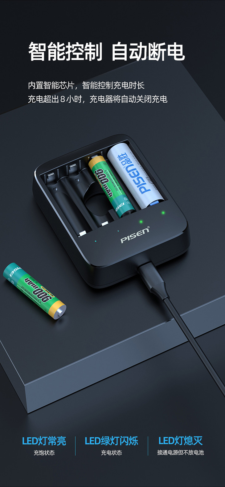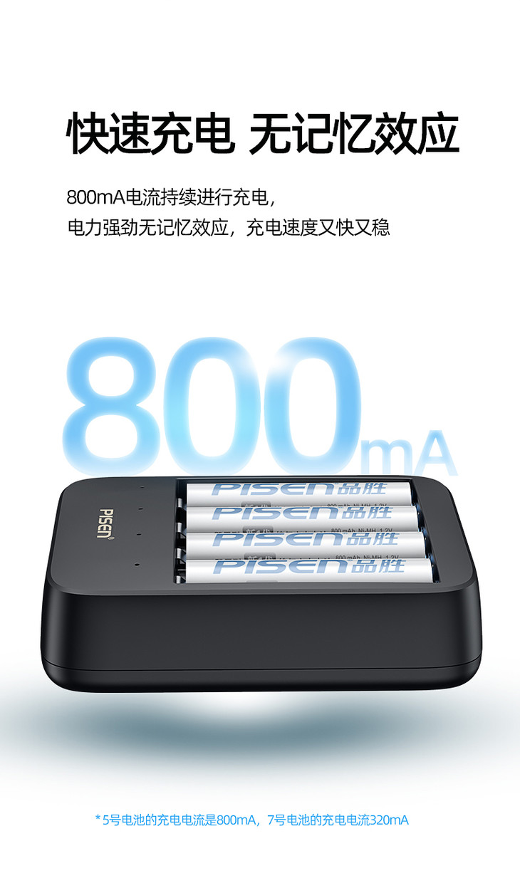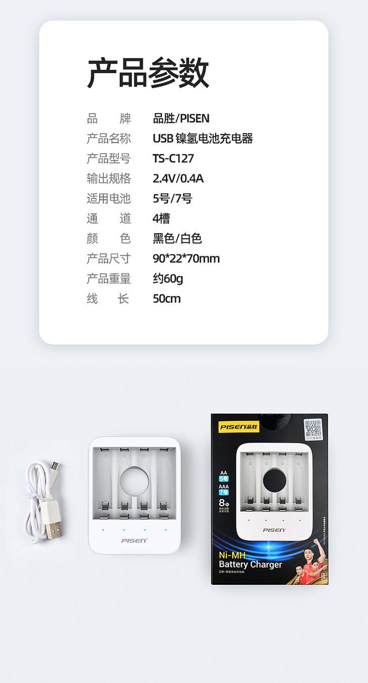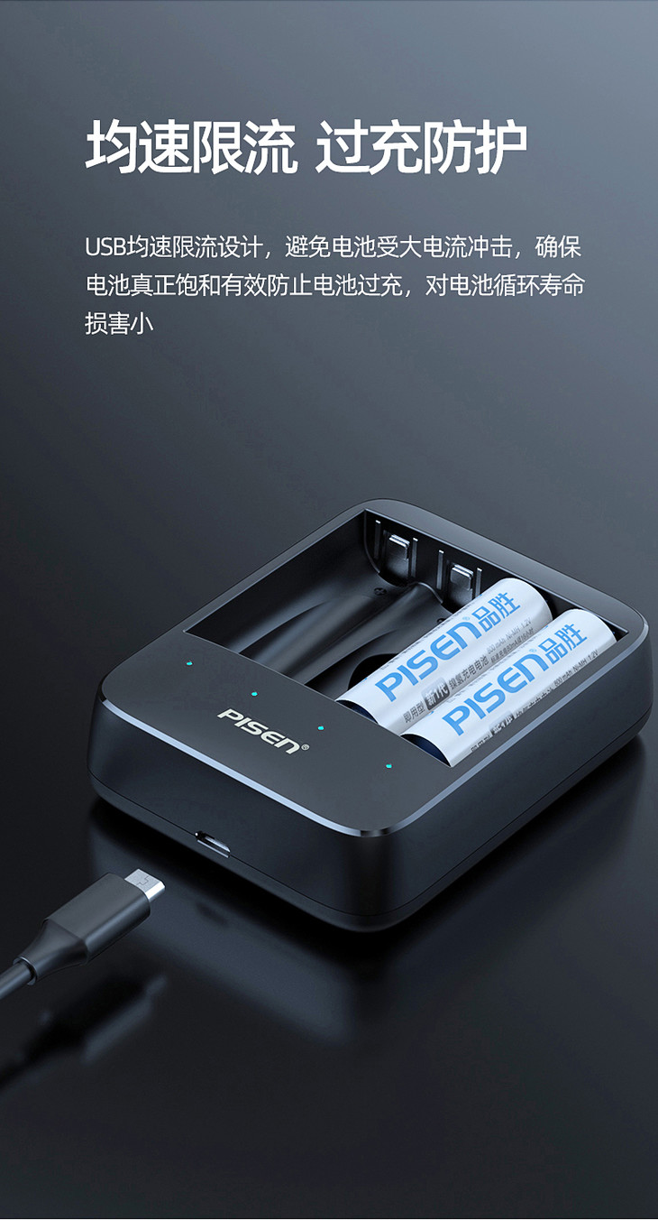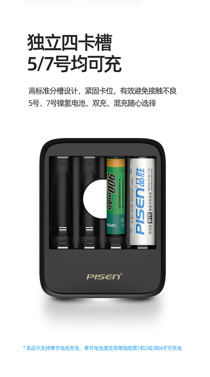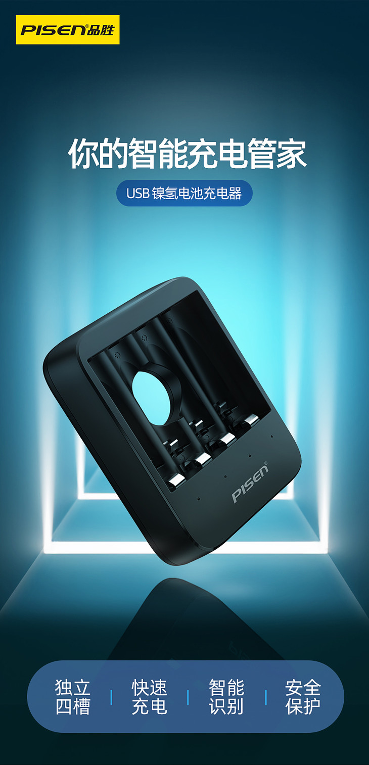 品胜 USB镍氢电池充电器 独立四槽 智能识别充电电池充电器5号7号均可充