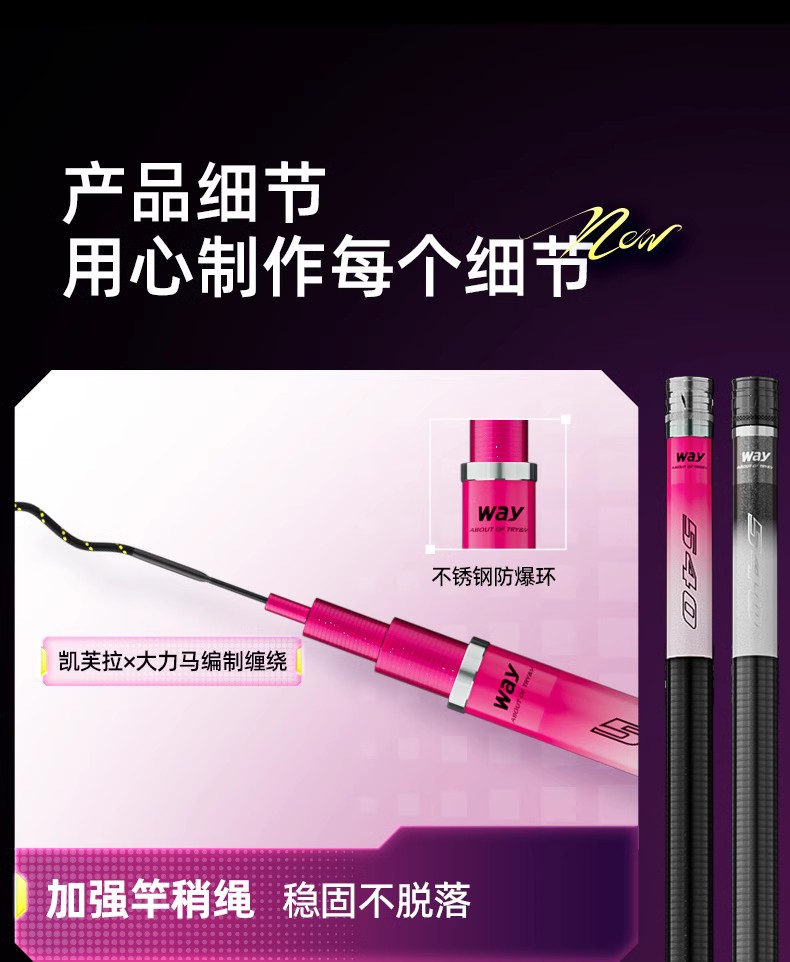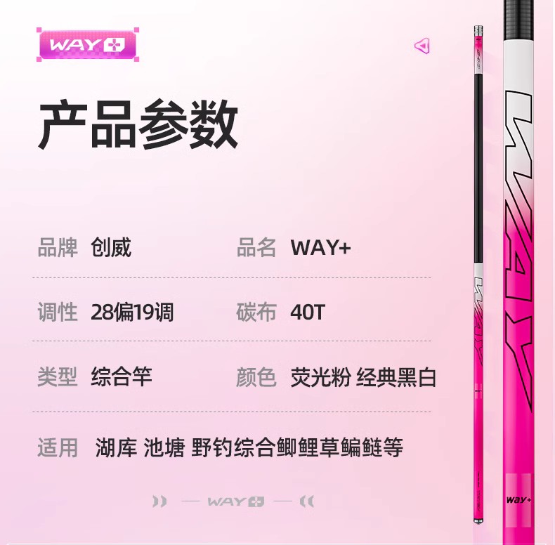 创威鱼竿WAY+钓鱼竿手杆超轻超硬台钓竿轻量野钓鲫鱼黑坑综合手竿