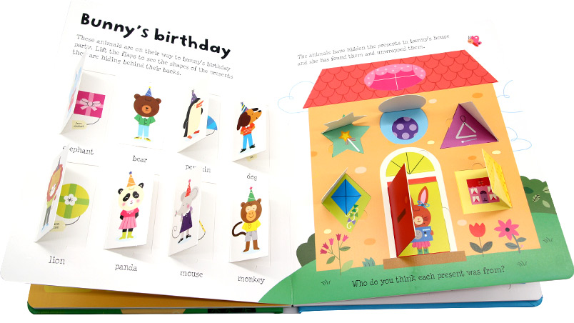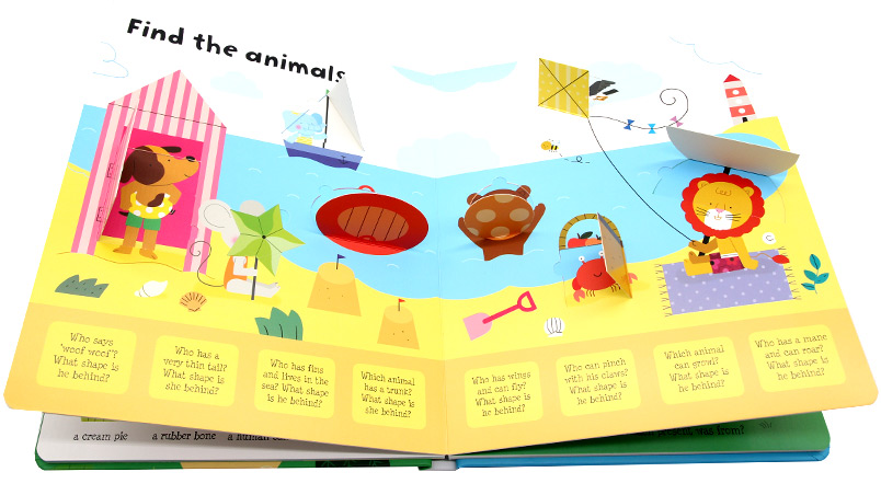 《Lift-the Flap: Shapes形状翻翻书》书中共六个场景:港口、生日派对、海边、马戏团...等,将形状认知,融入小朋友的生活经验。
