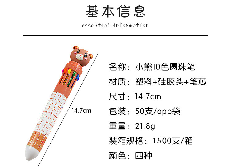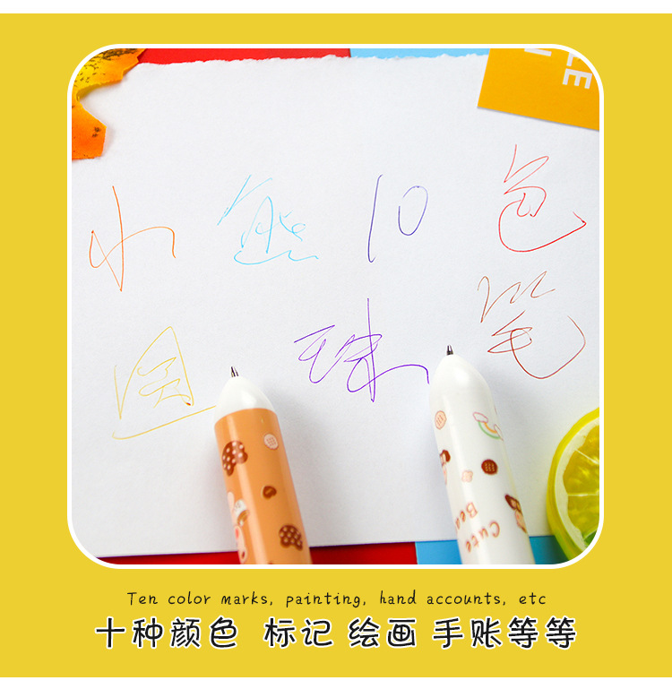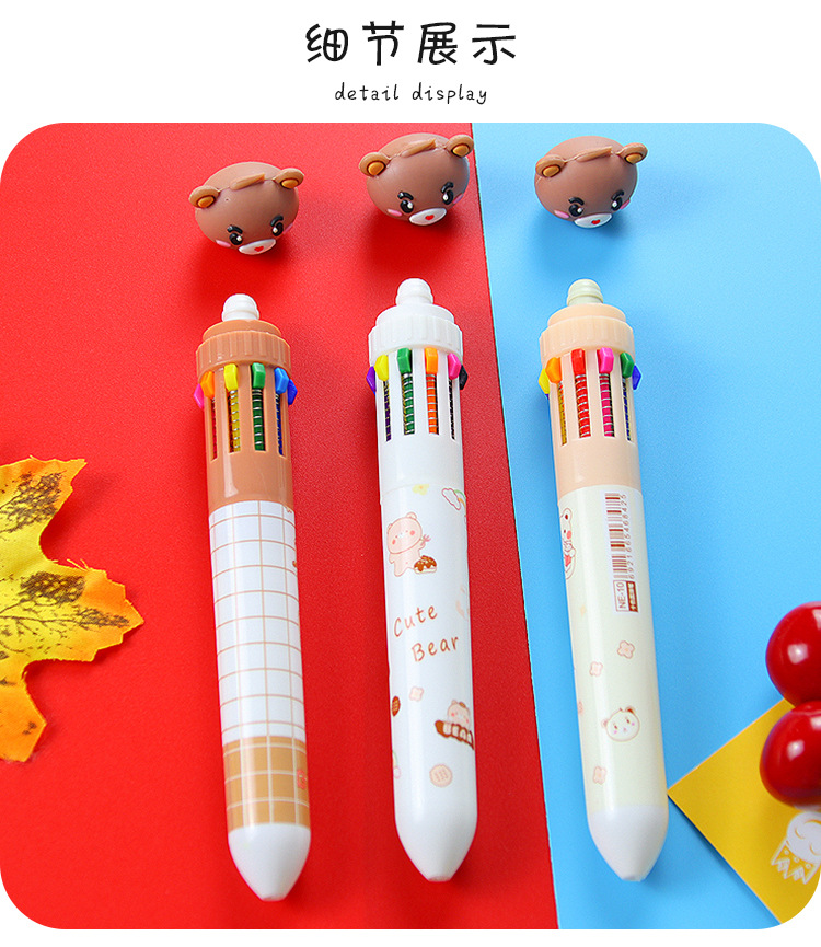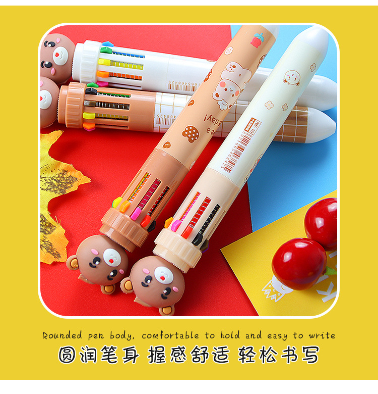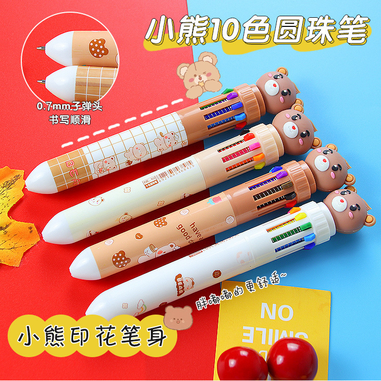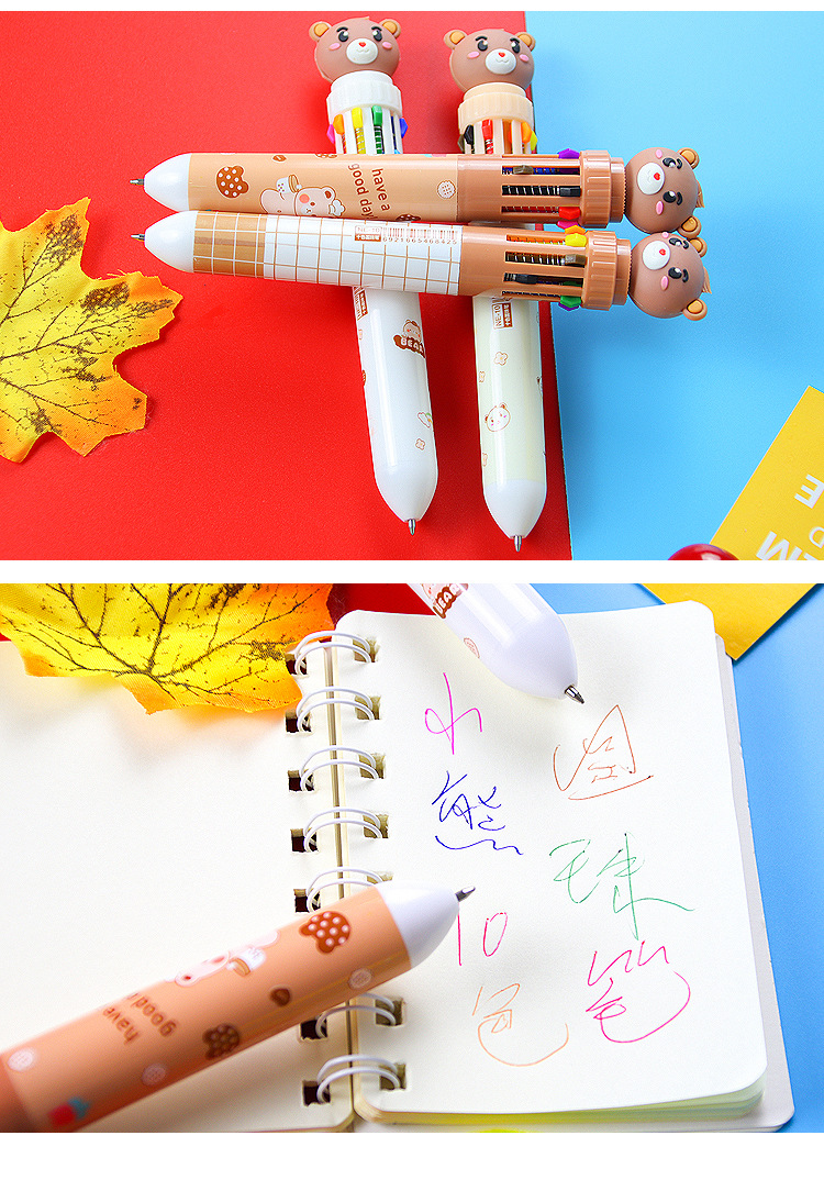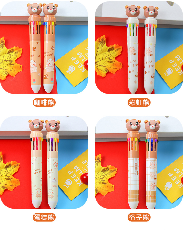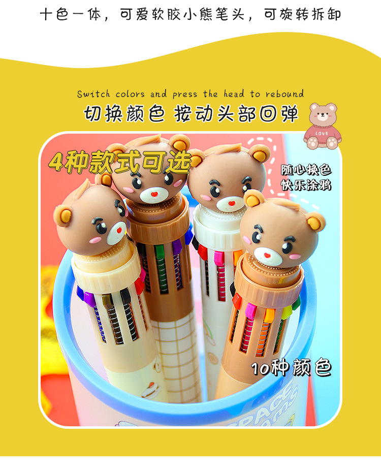 创意小熊按动十色圆珠笔可爱学生文具10色圆珠笔小清新彩色手账笔 1支