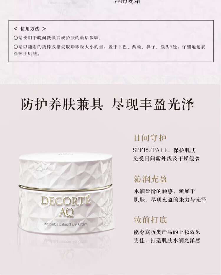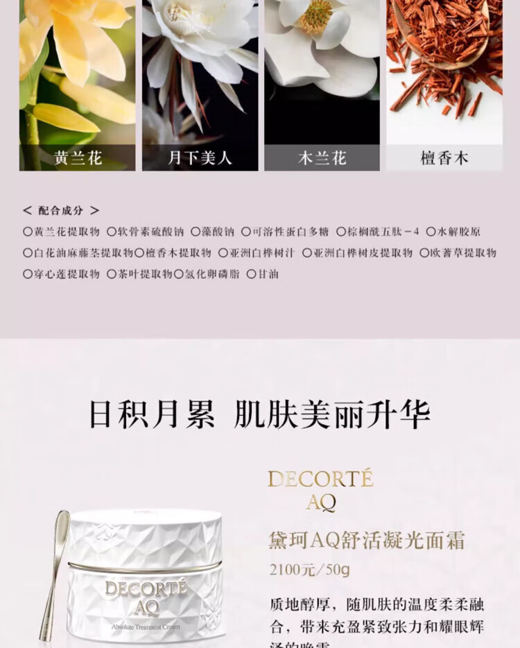 黛珂AQ白檀舒活凝光新版日霜滋润淡纹50g 效期至26年6月