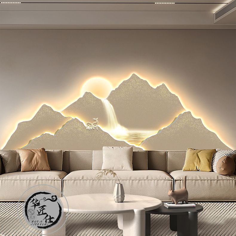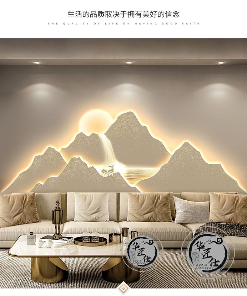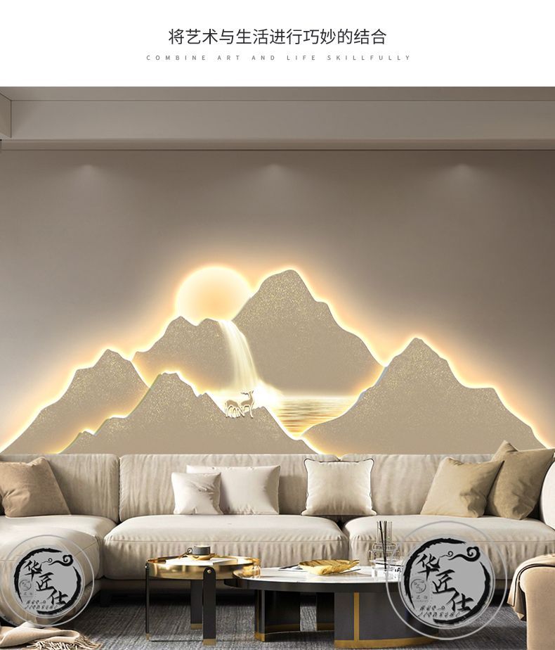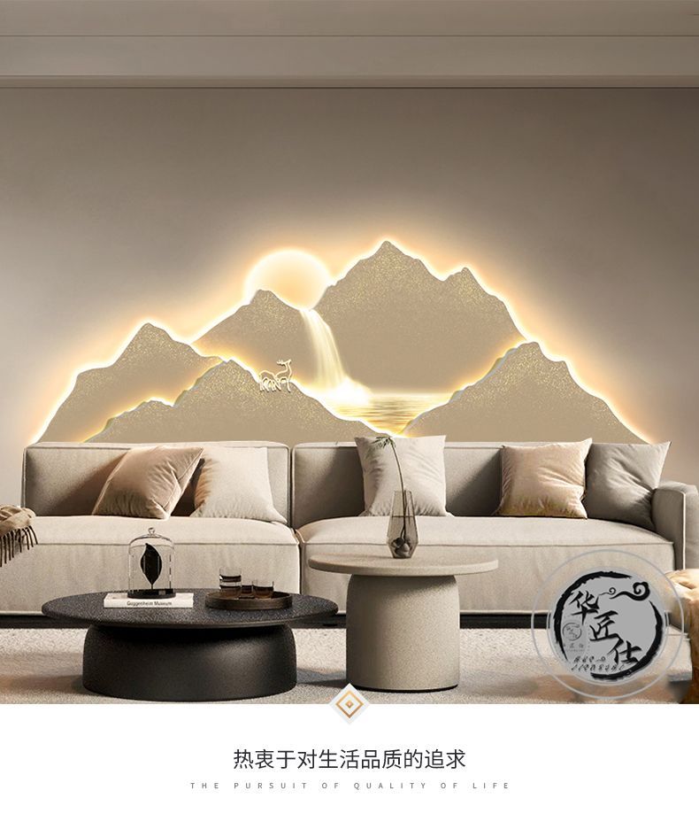 背有靠山客厅装饰画轻奢大气沙发背景墙挂画金山发光高级感壁灯画