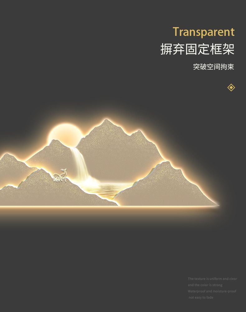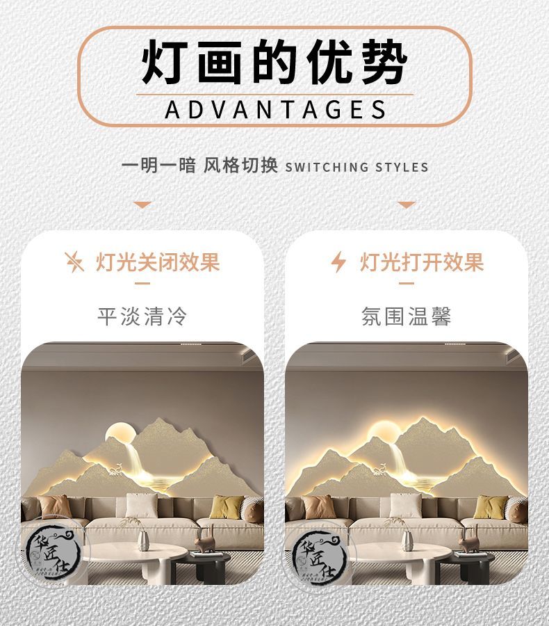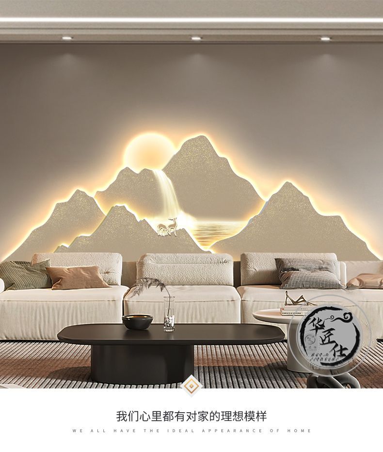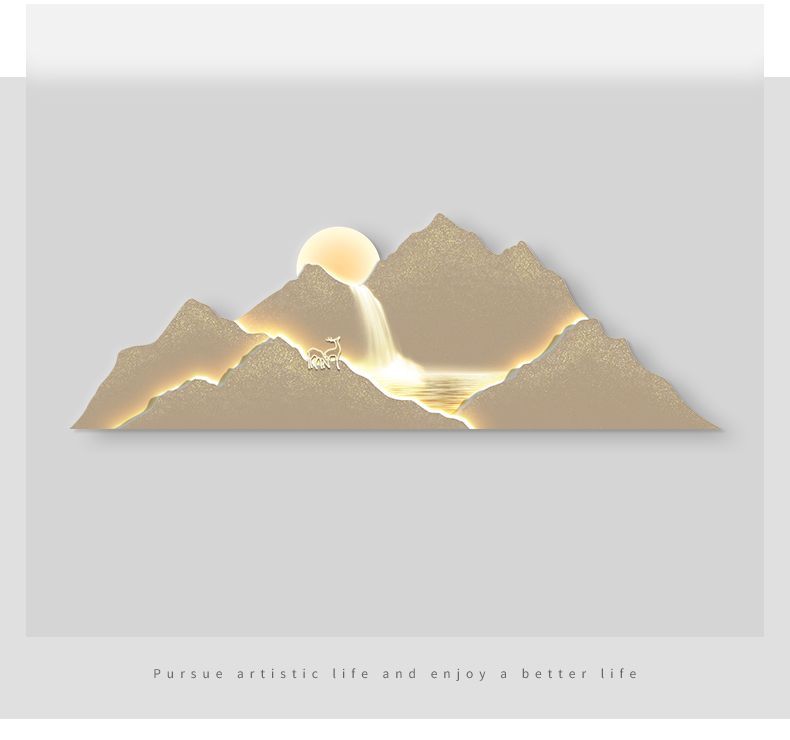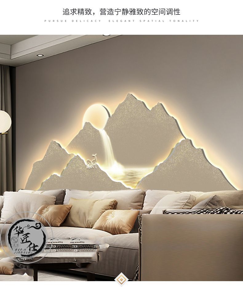 背有靠山客厅装饰画轻奢大气沙发背景墙挂画金山发光高级感壁灯画