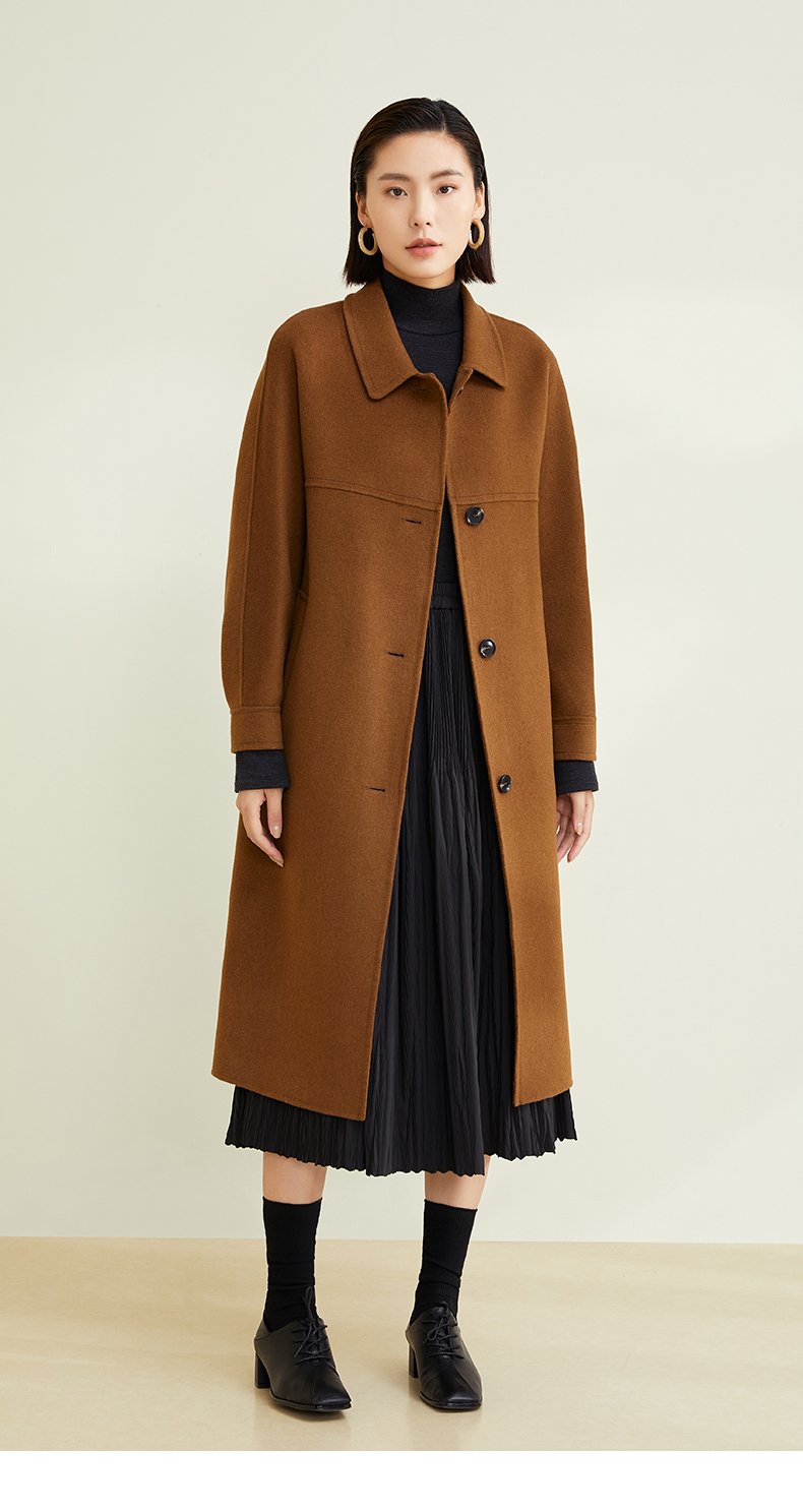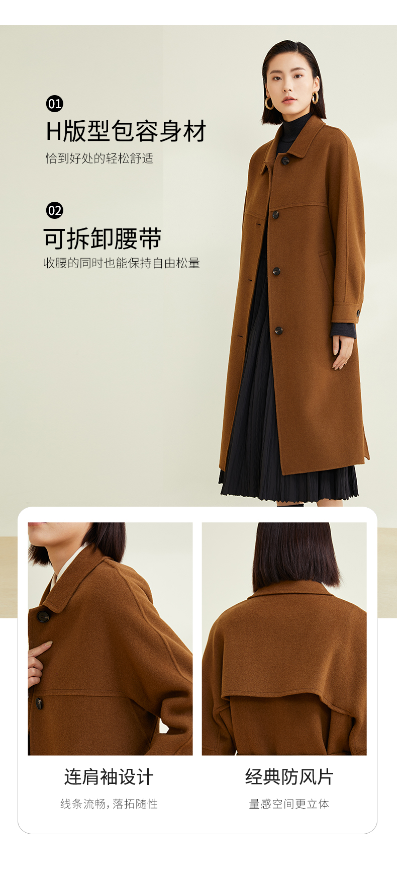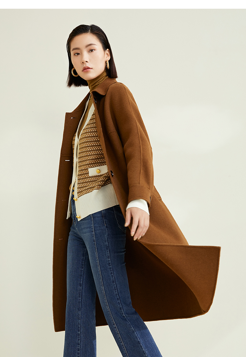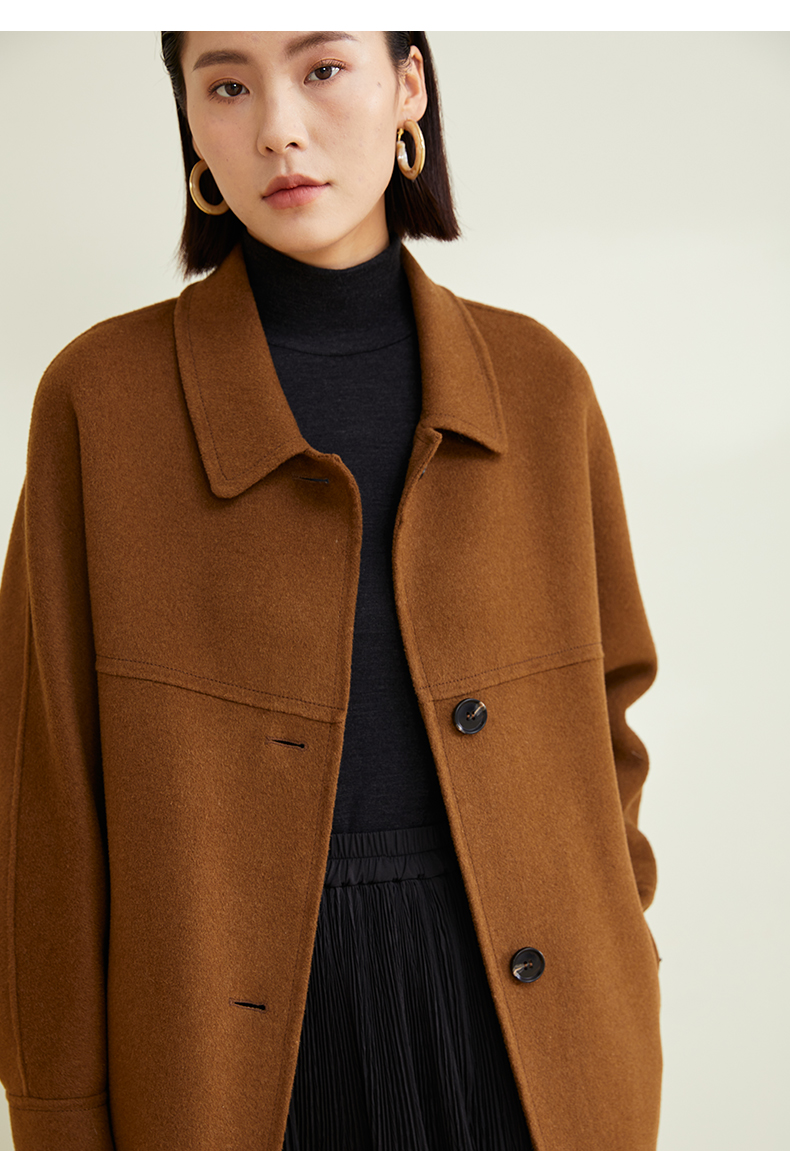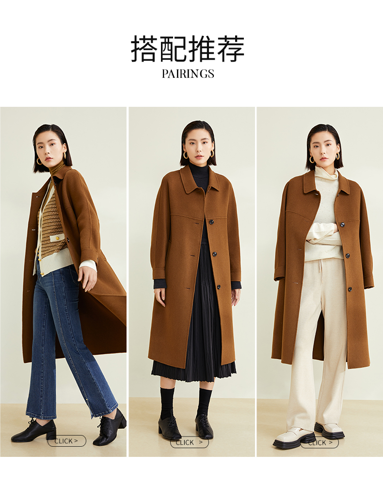 玳莎双面呢外套女2022栋新款翻领单排扣毛呢中长款大衣气质高级感 CD39305