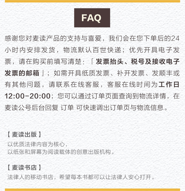 - 「麦读出版」是以优质法律内容为核心,以纸张和屏幕为阅读载体的创意出版机构。「麦读书店」是法律人的移动书店,希望每本书都可以让法律人安心打开。