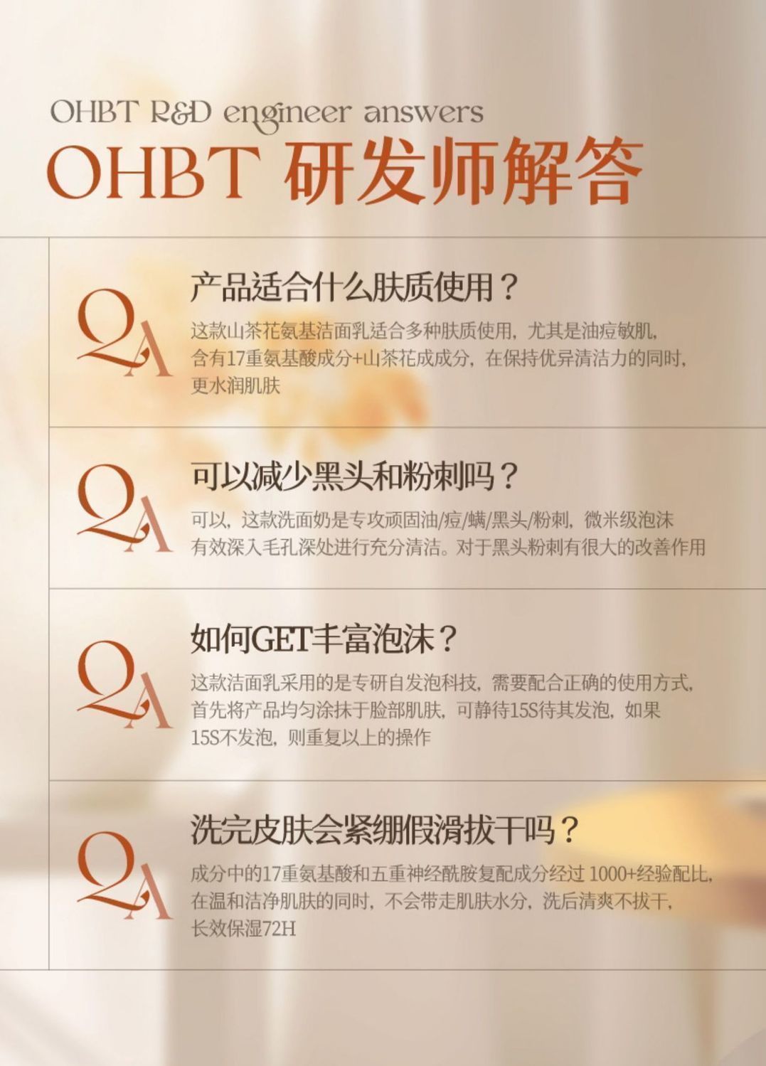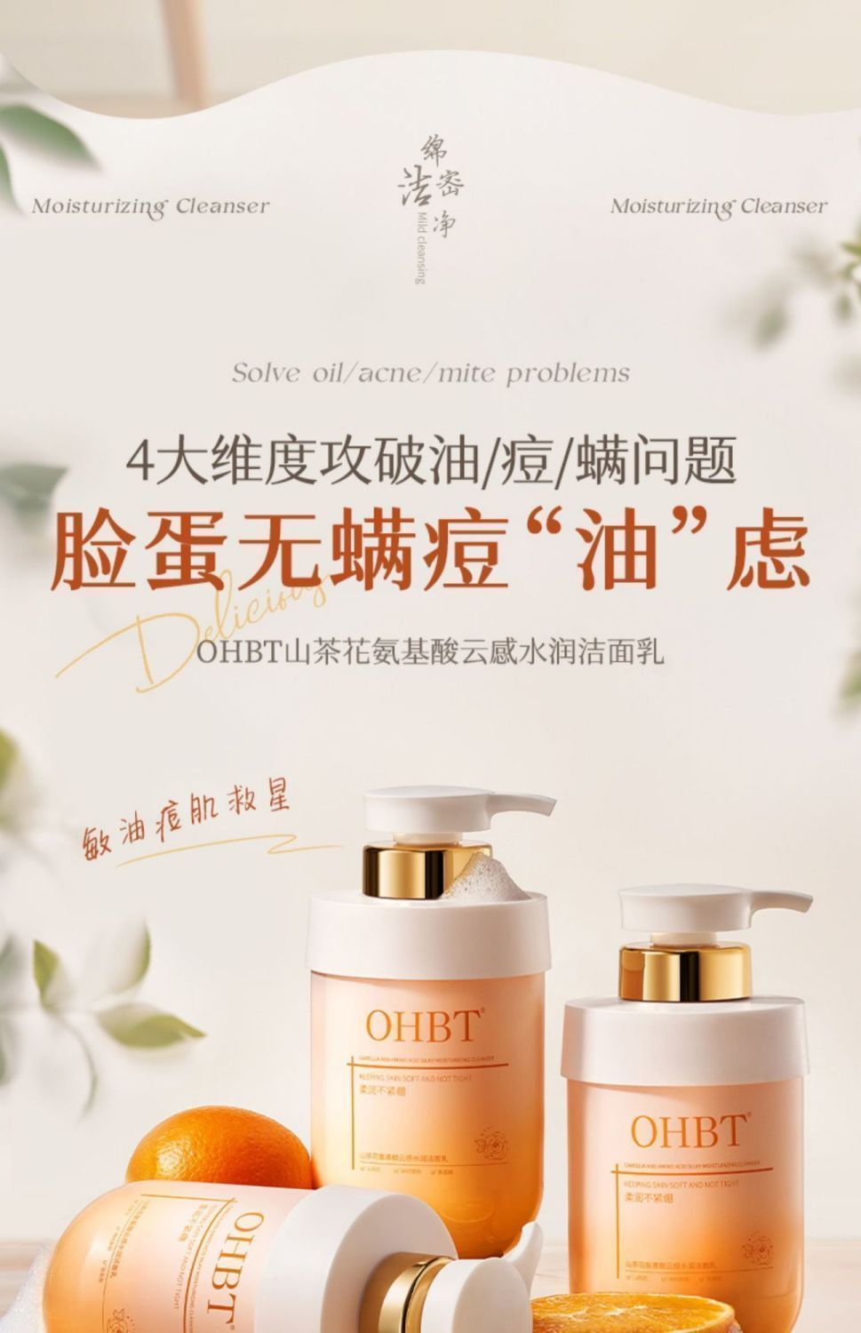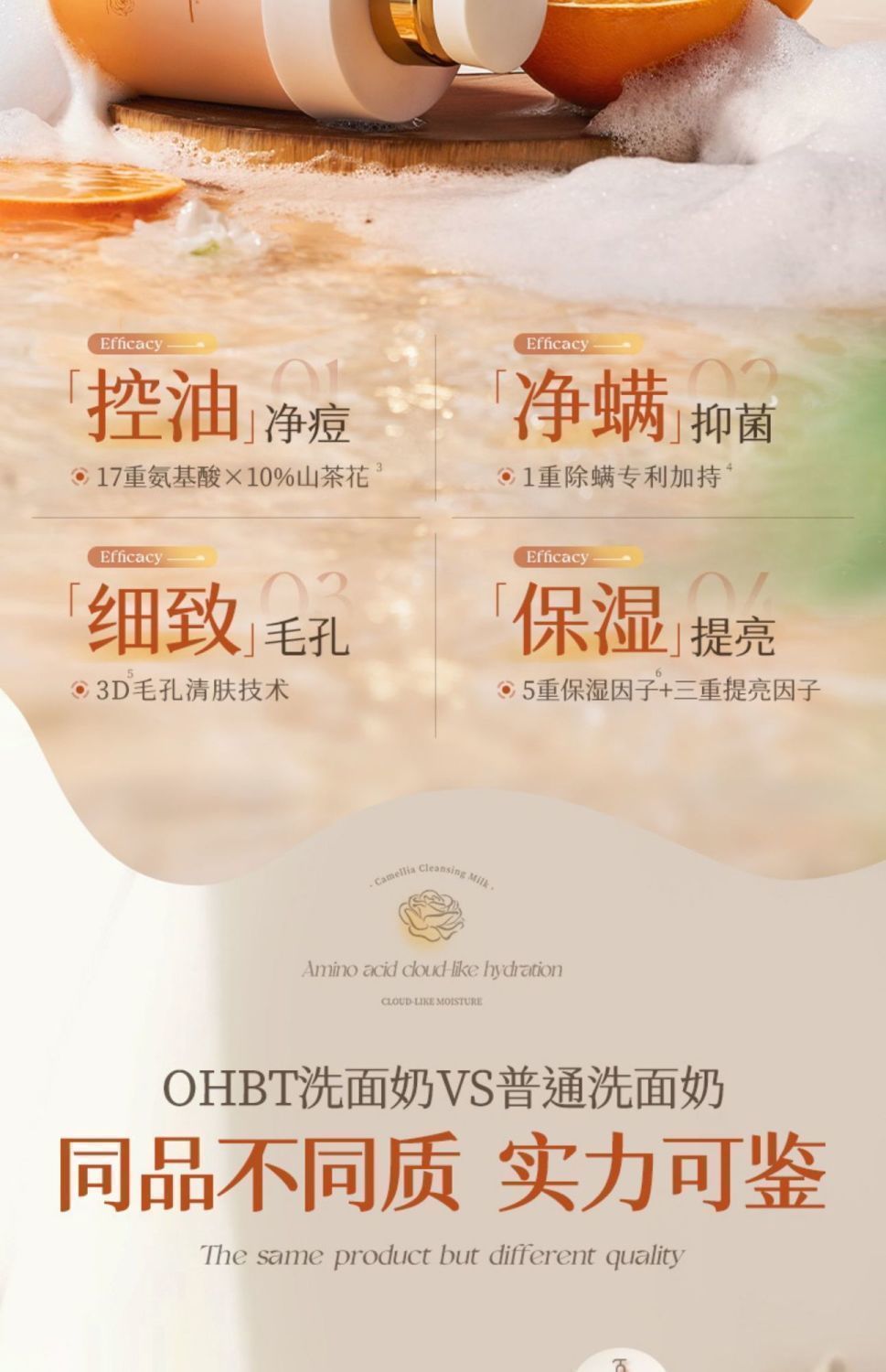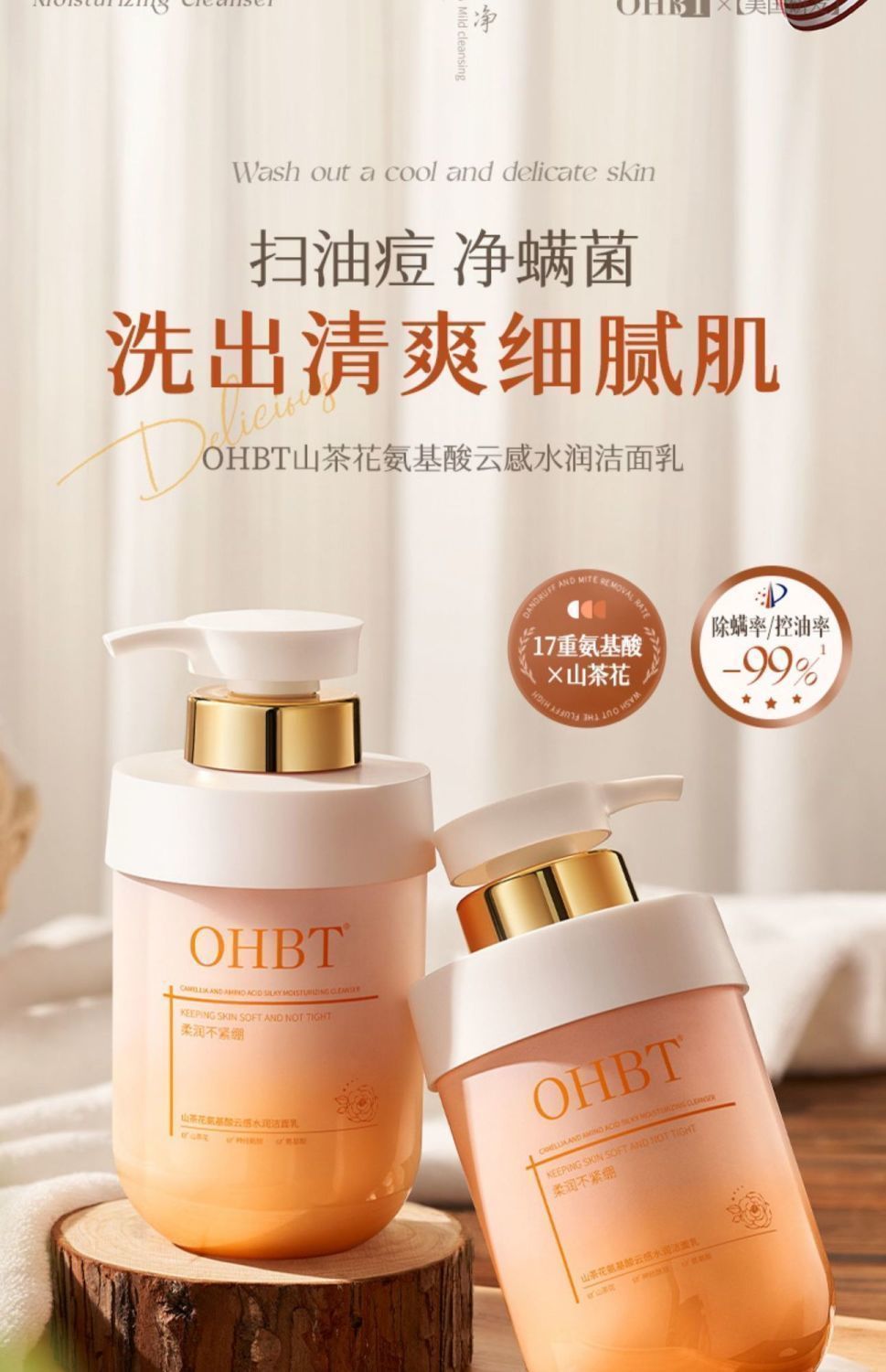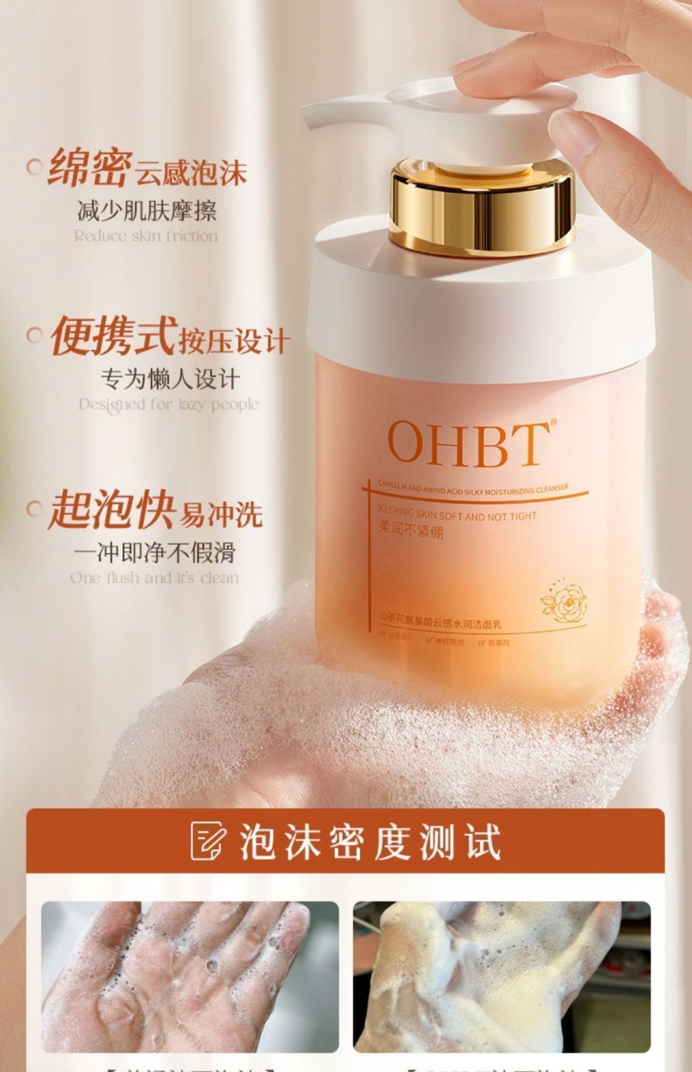 OHBT山茶花氨基酸云感水润洁面乳500g