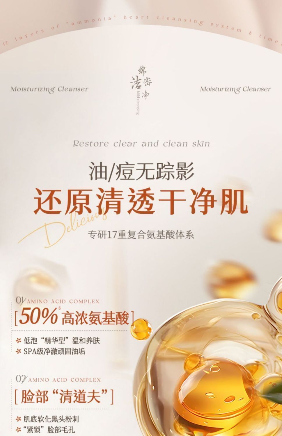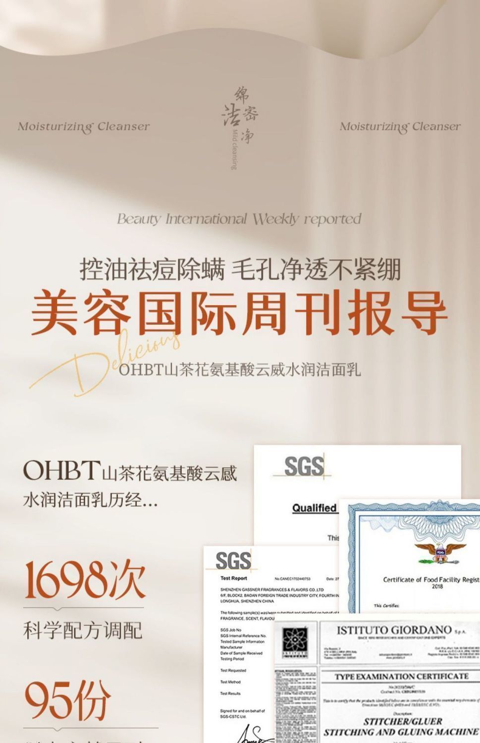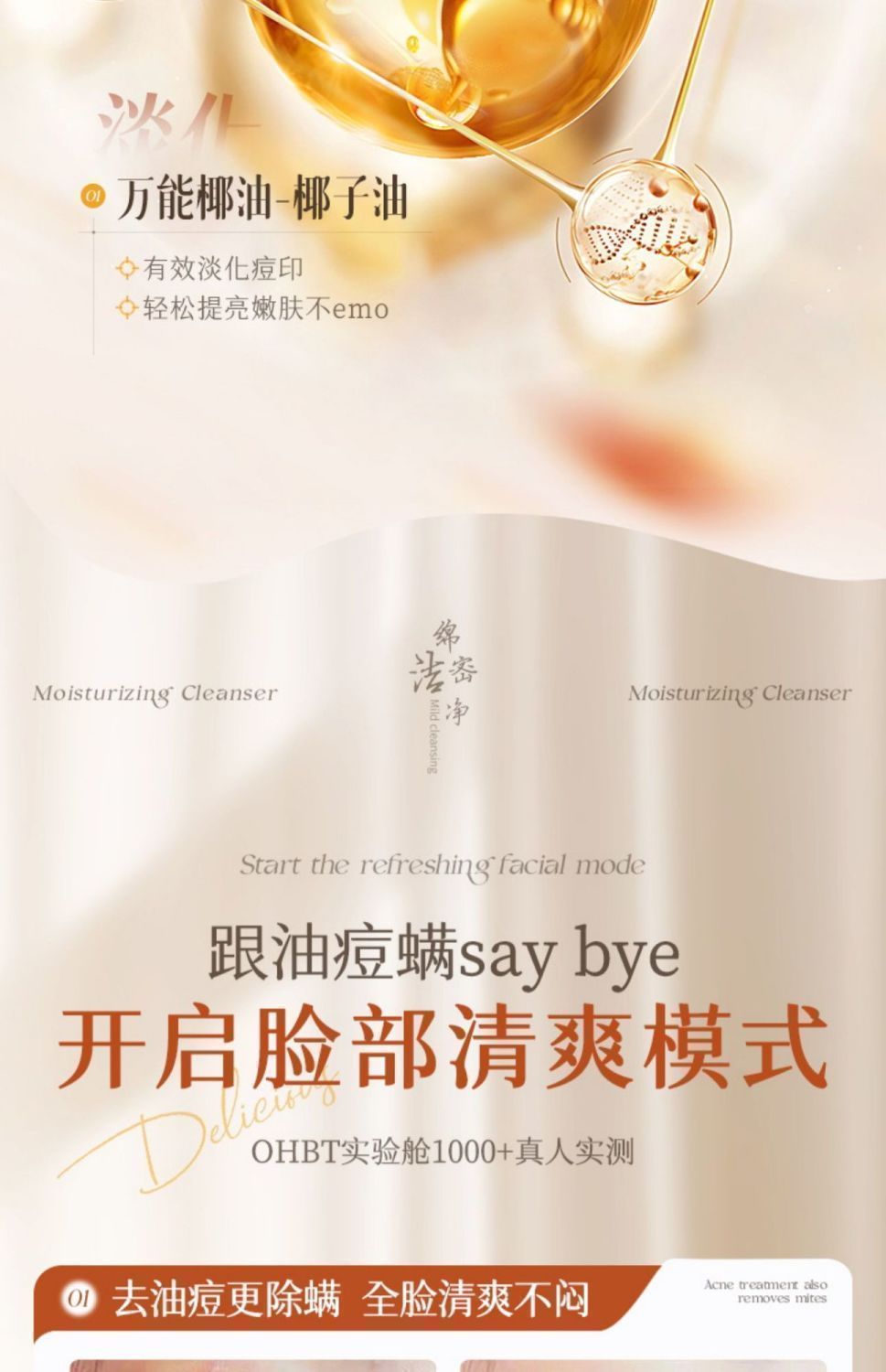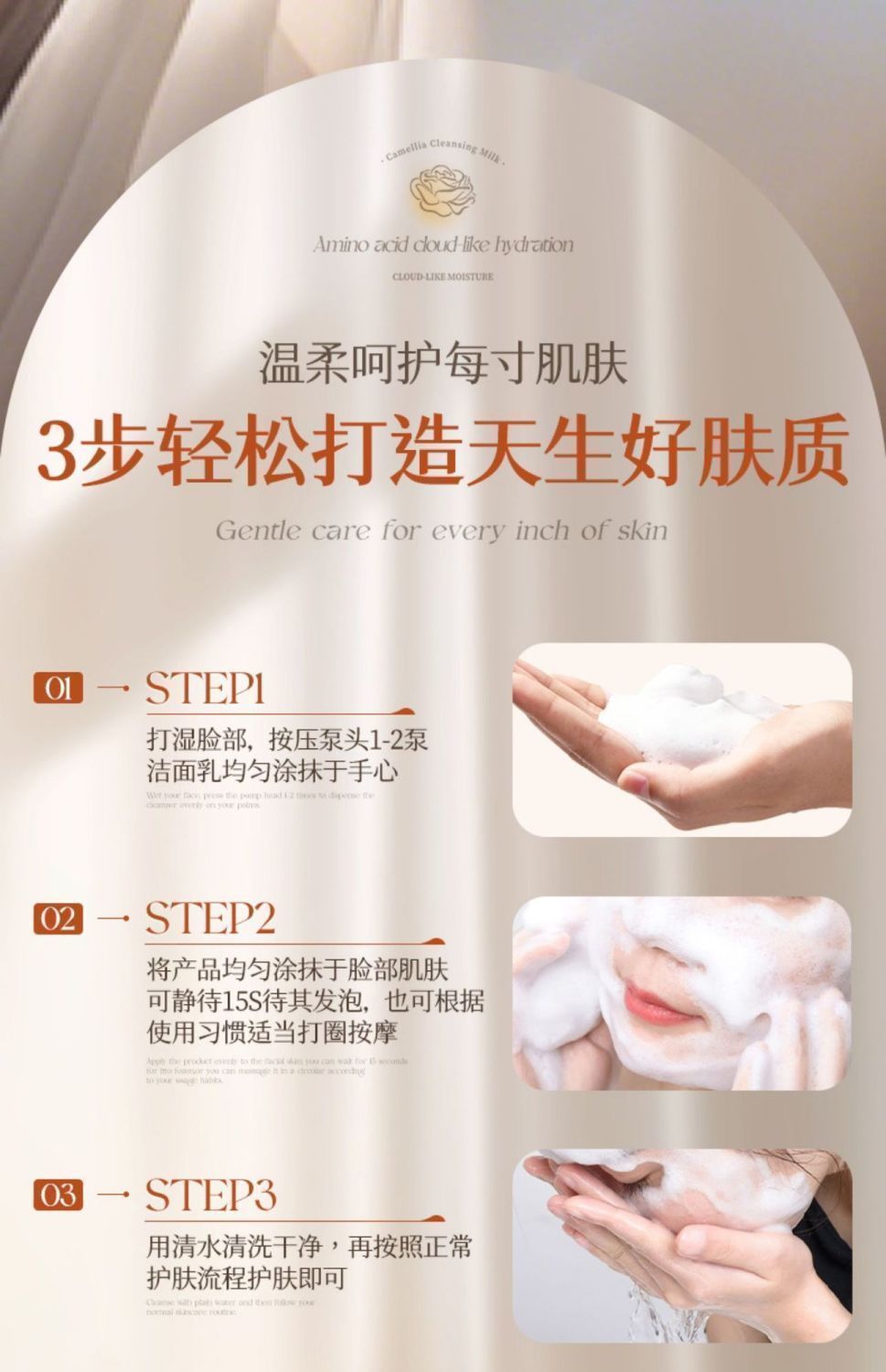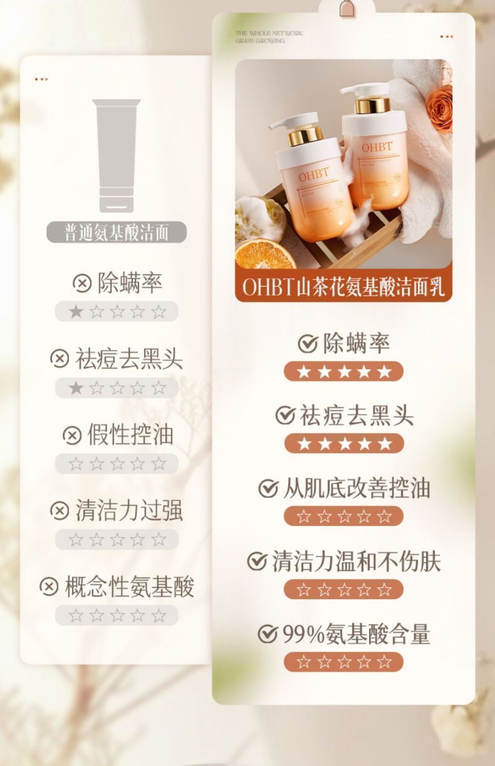 OHBT山茶花氨基酸云感水润洁面乳500g