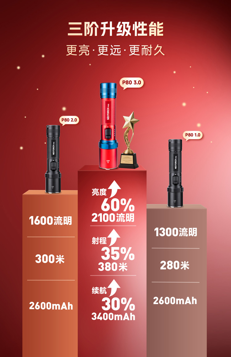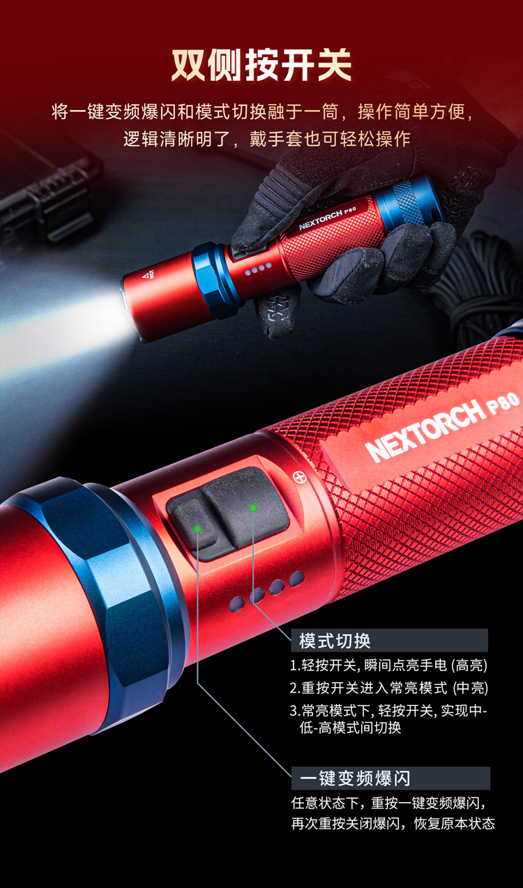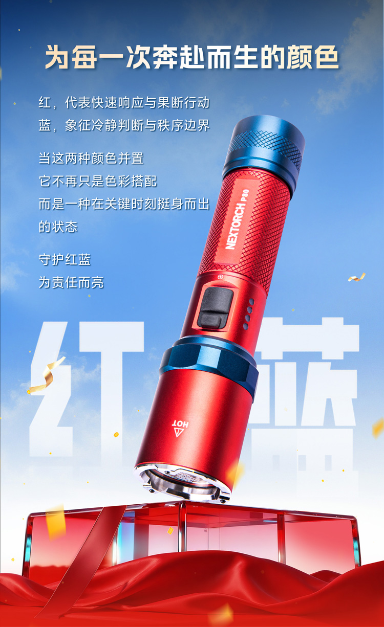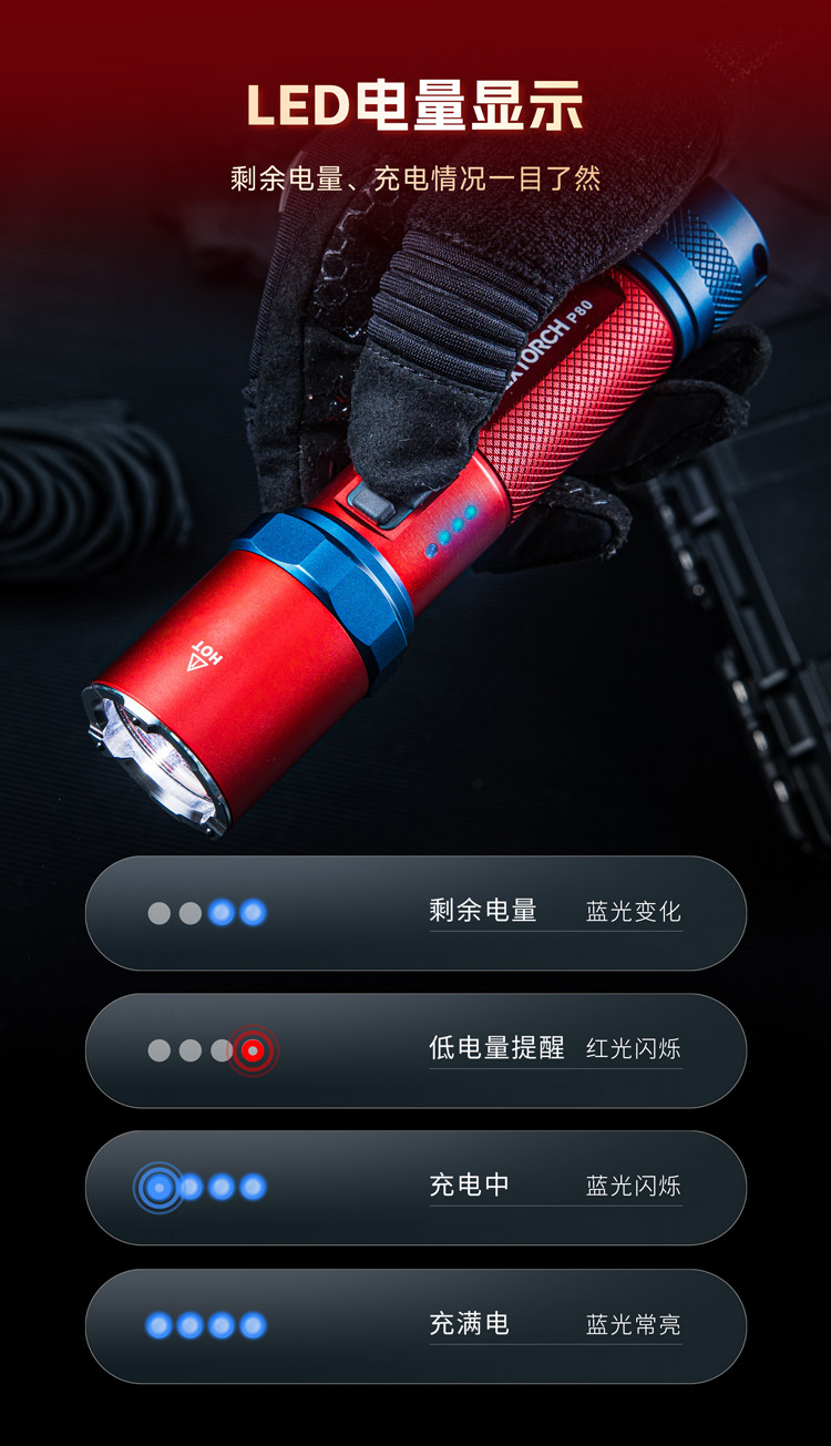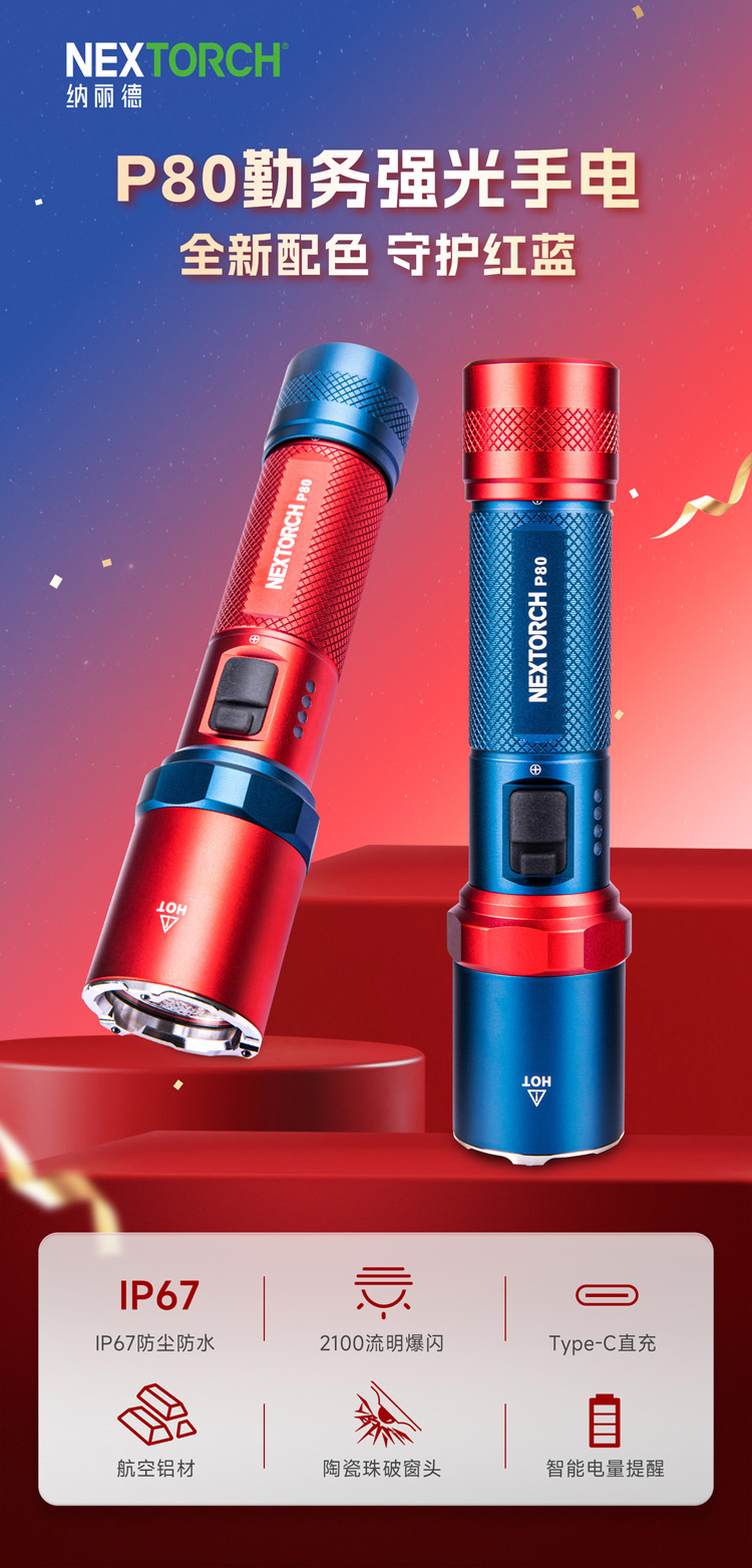 【新品】P80-2100流明红蓝配色版手电