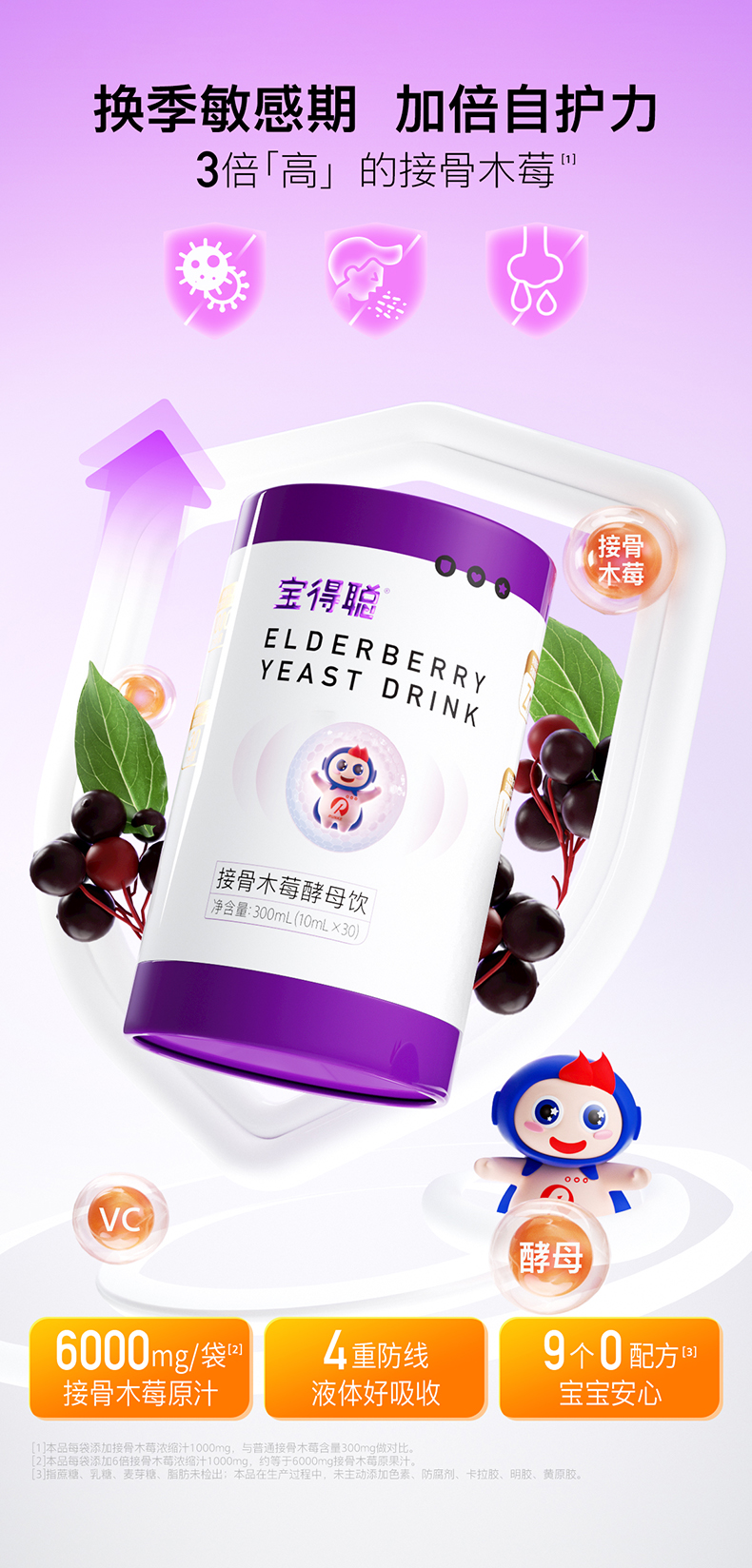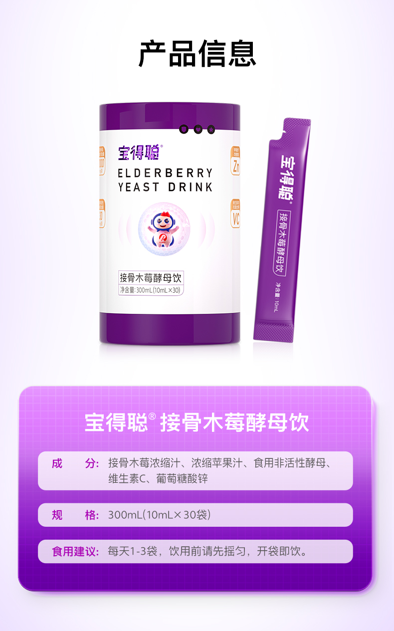 宝得聪 接骨木莓酵母饮300ml(10ml*30)/罐