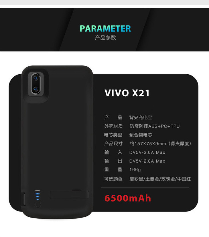 。【充电 宝】适用vivoX21背夹电池X21无线充电宝大容量快充移动电源超薄手机壳