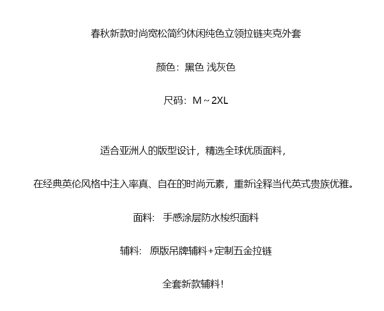 【ss1】春新款男子宽松简约休闲纯色立领拉链夹克/外套!!