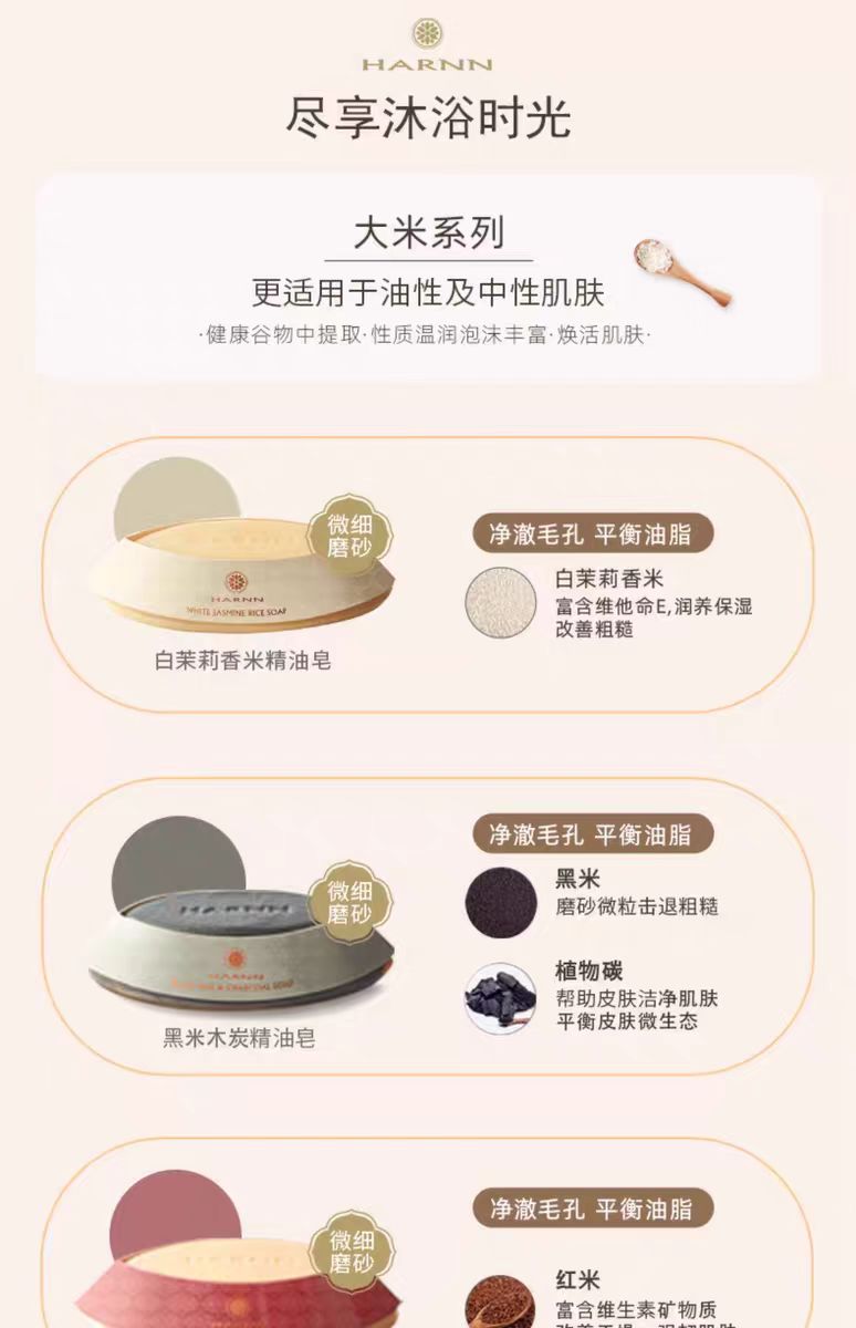 4楼Eubelle欧蓓 HARNN泰国米糠精油皂100g 沐浴洗手全身 吊牌价:60元 活动价:53.9元