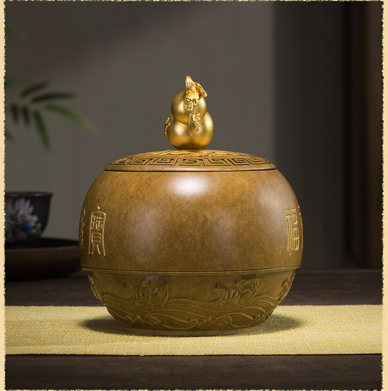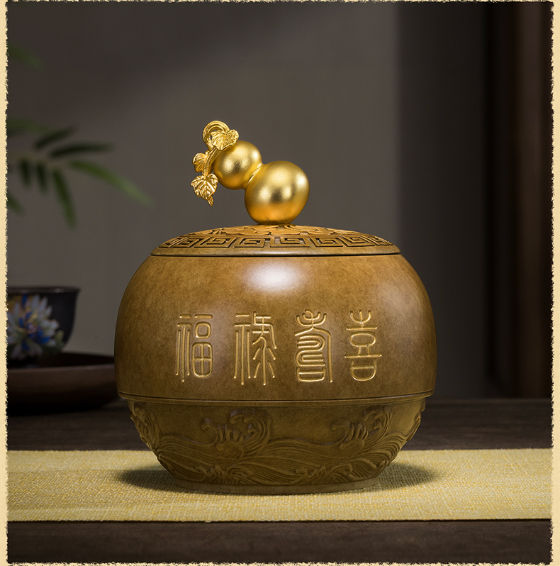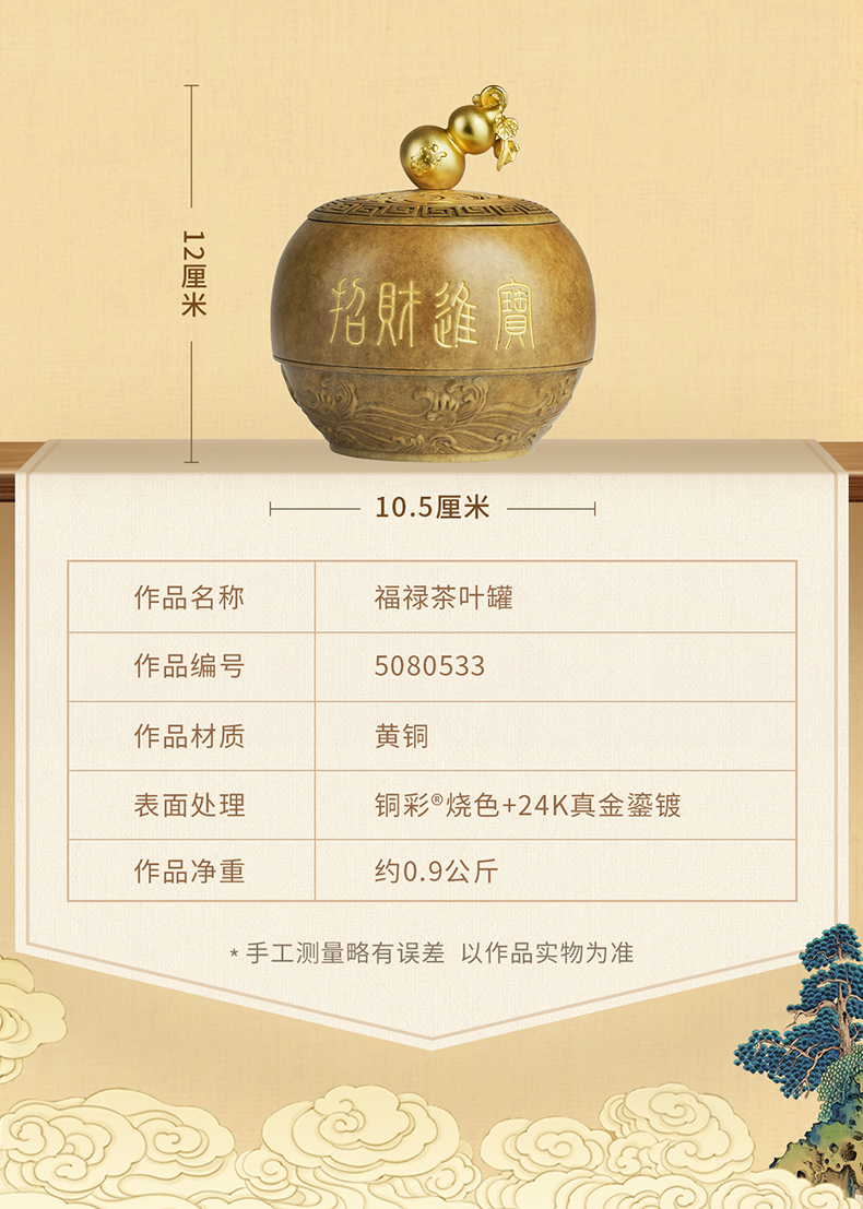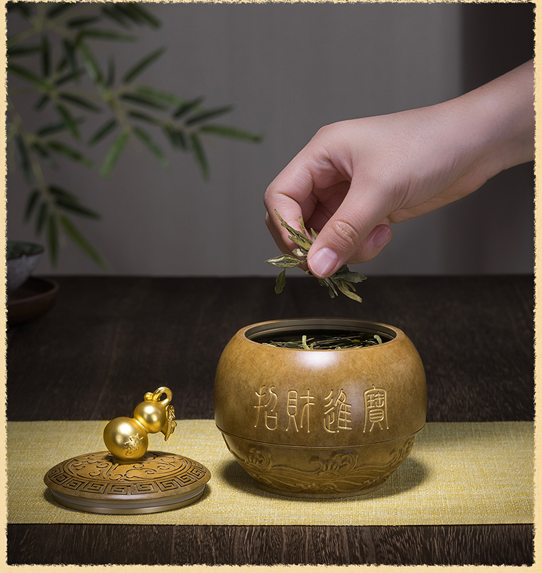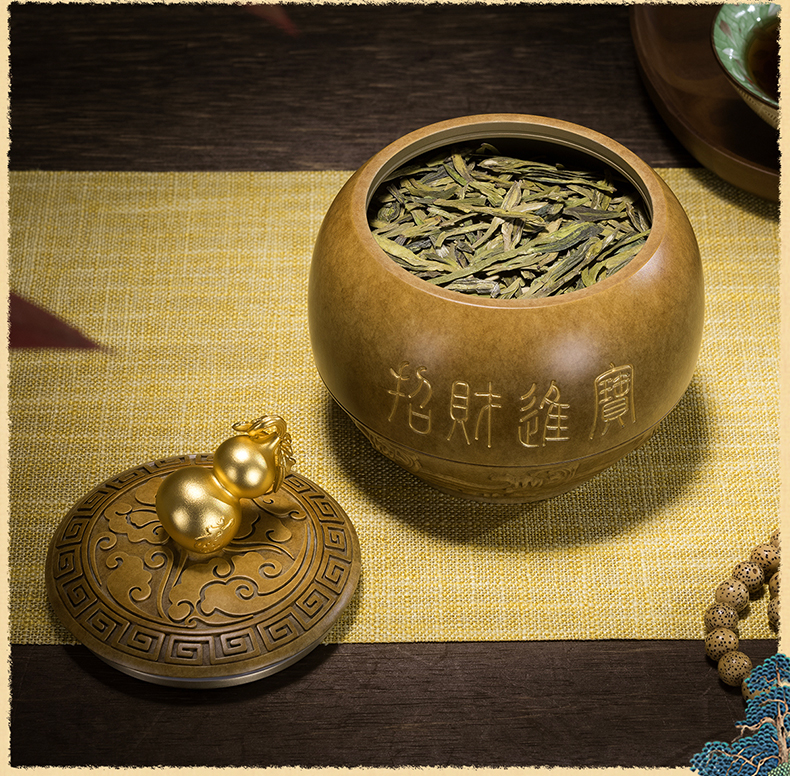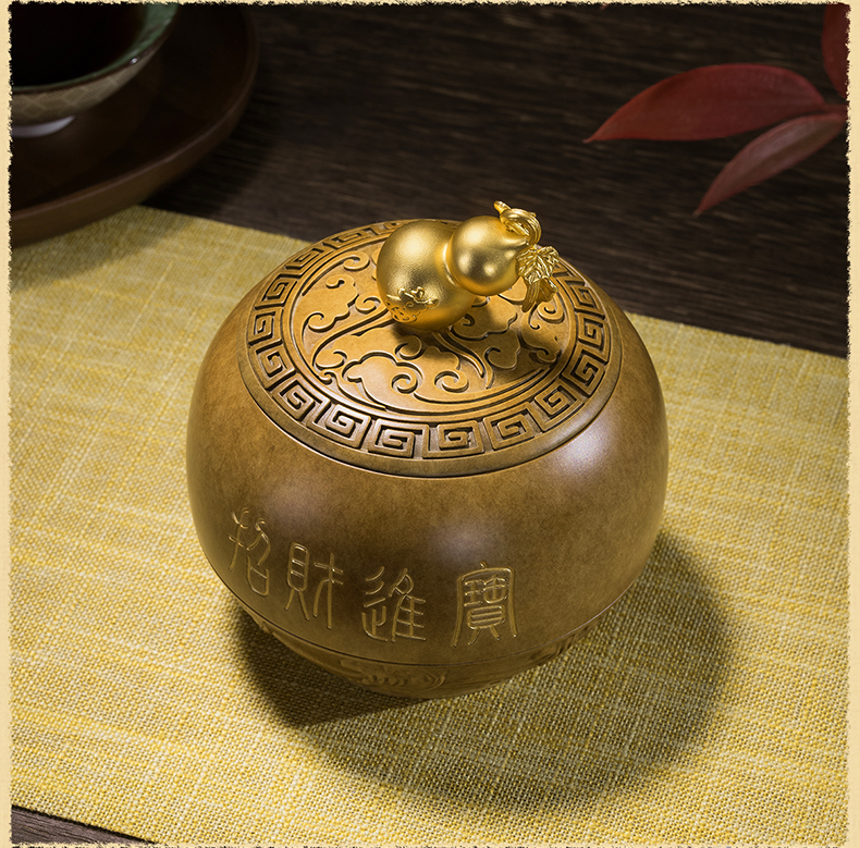 铜师傅《茶叶罐系列》客厅桌面铜茶罐摆件 家居装饰工艺品