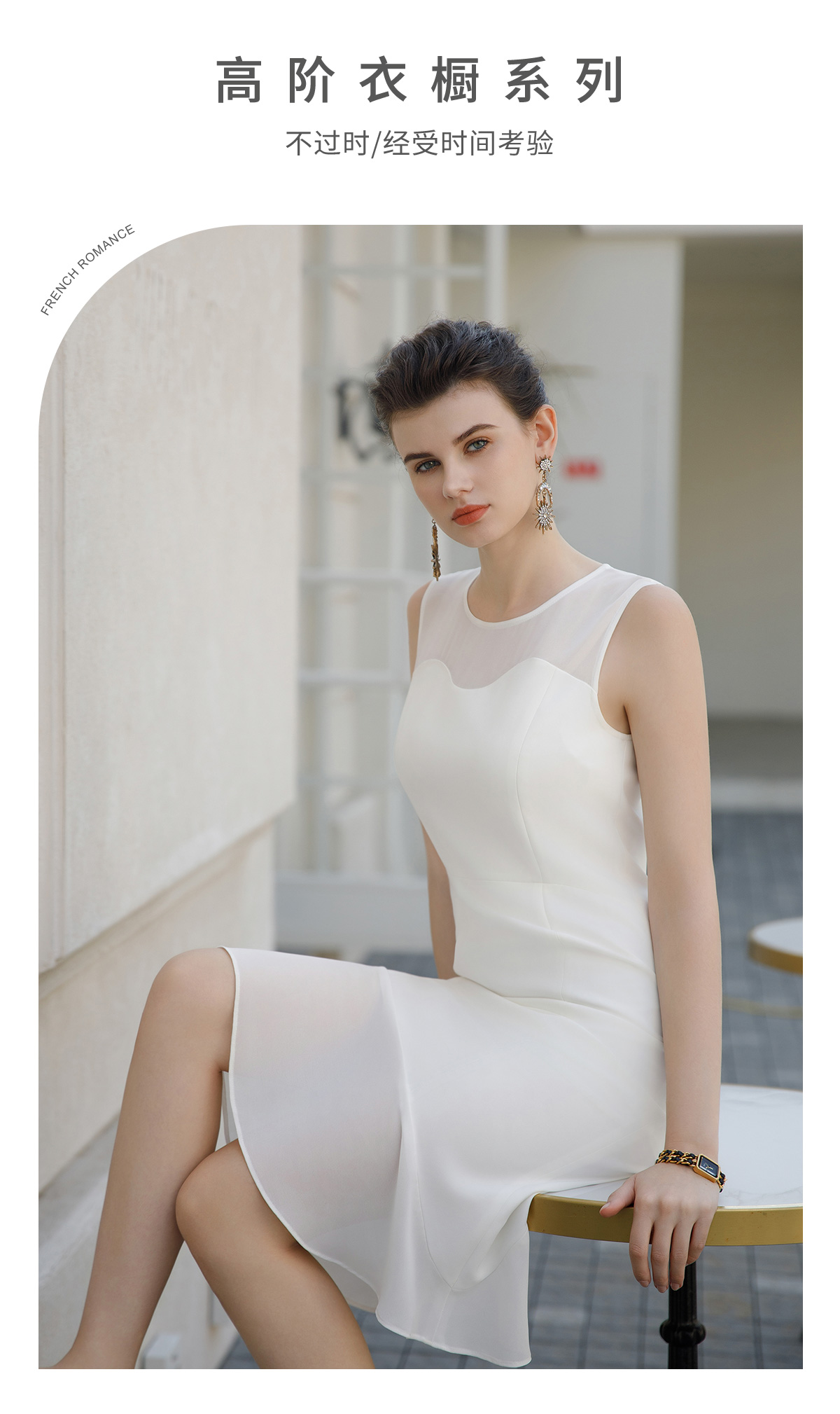 AD夏季白色连衣裙女高端法式荷叶边显瘦背心裙透视雪纺接拼鱼尾裙