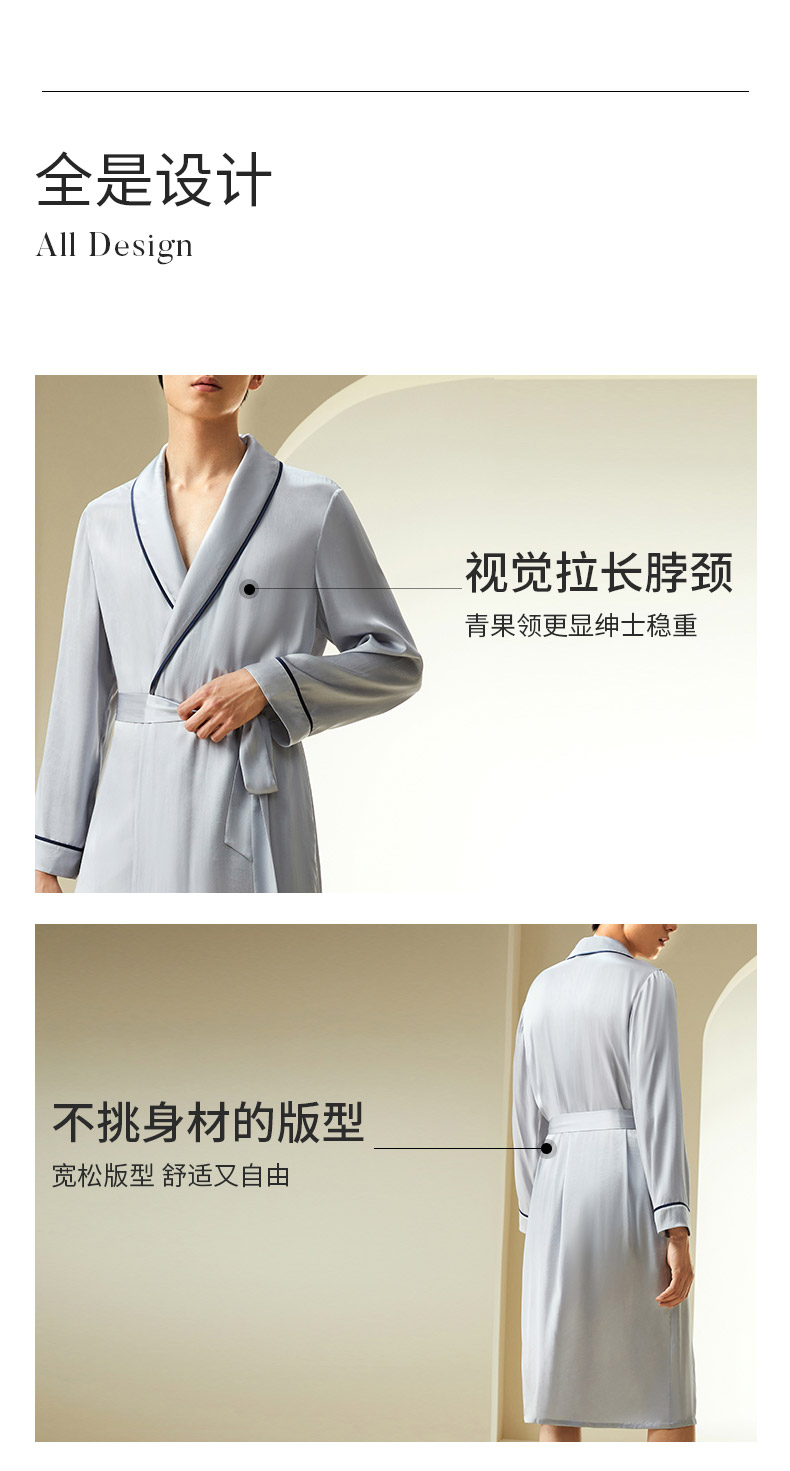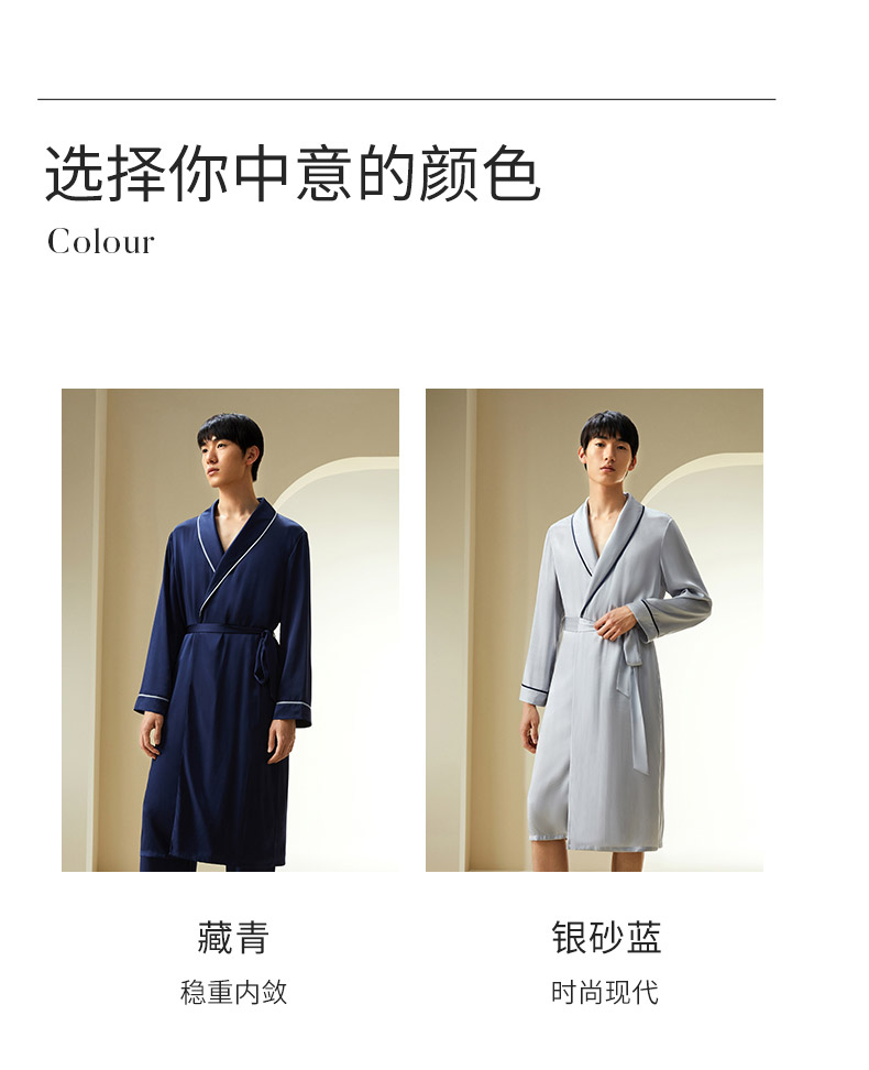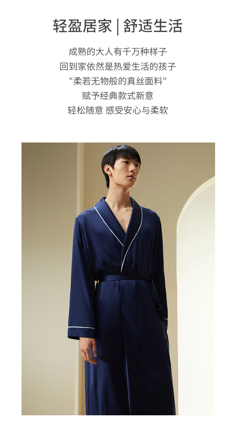 金三塔19姆米重磅真丝时尚100%桑蚕丝男睡衣睡袍新品可外穿 YSMDC101