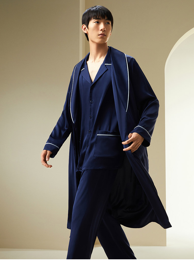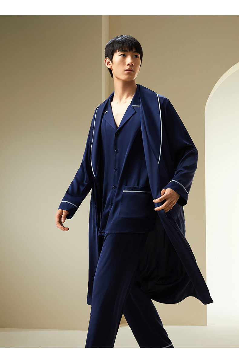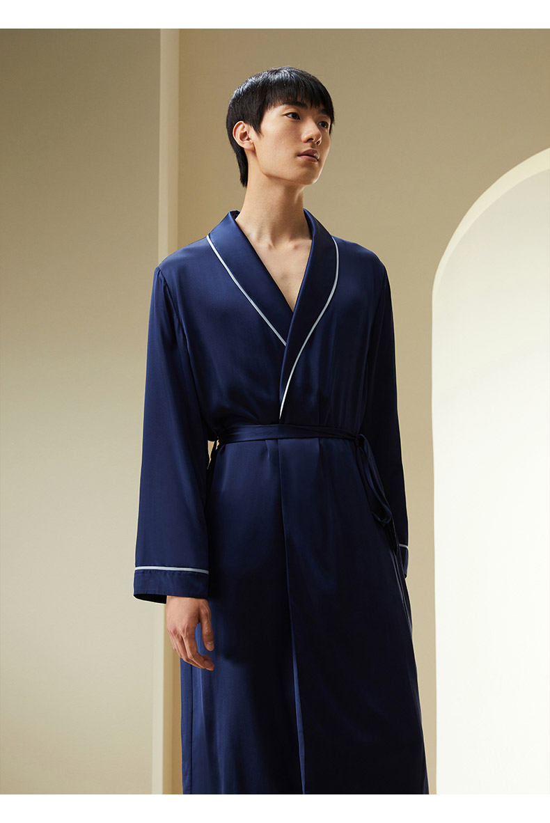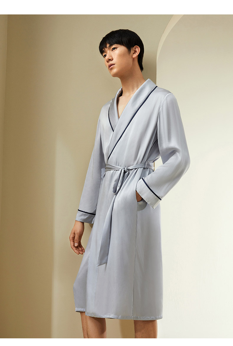 金三塔19姆米重磅真丝时尚100%桑蚕丝男睡衣睡袍新品可外穿 YSMDC101
