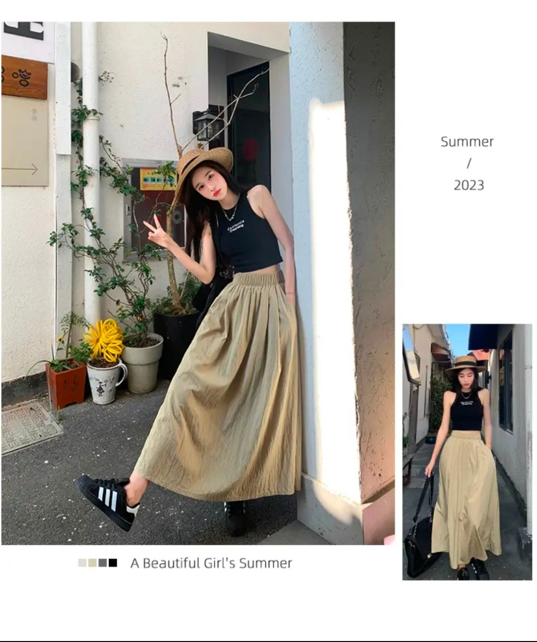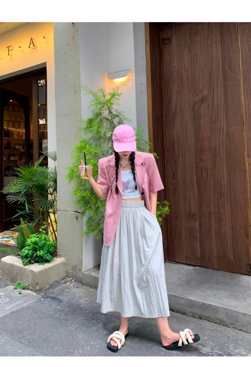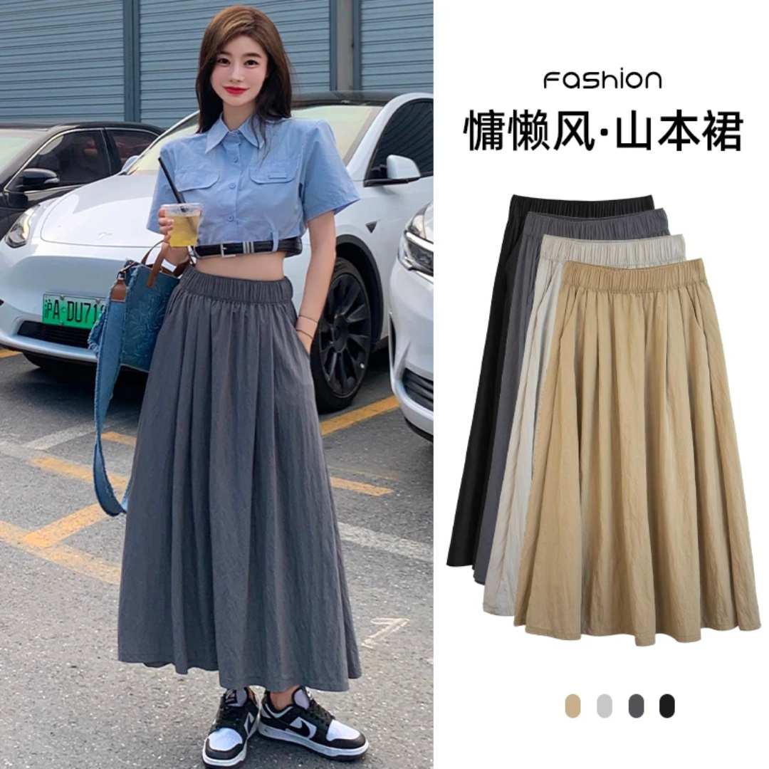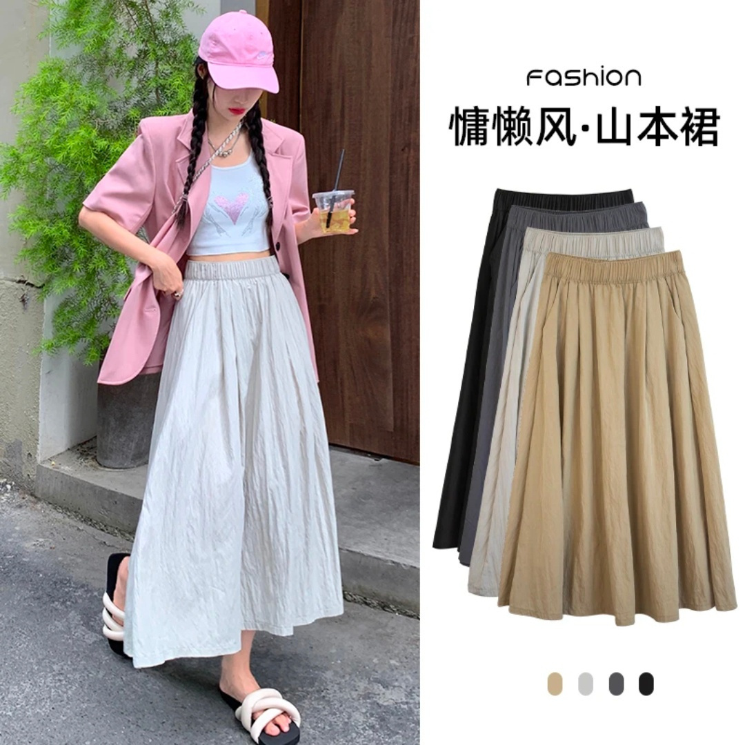 【可盐可甜百搭慵懒风褶皱山本裙】上身绝美!十分优雅撩人 拉长视觉效果 主打一个超柔软十超凉快十超显瘦! 肌理感面料,不起球不易皱! A字版型遮胯宽!