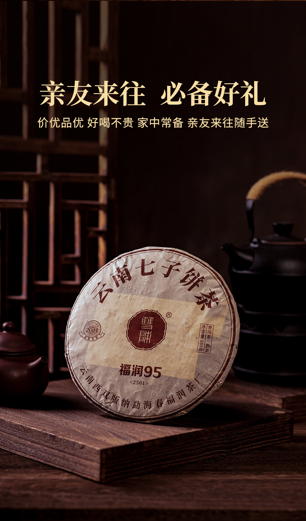 双陈普洱茶2025年福润95熟茶357克茶叶口粮茶七子饼送礼易武产区