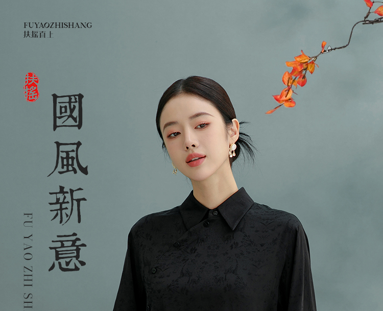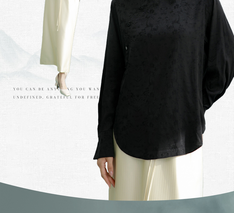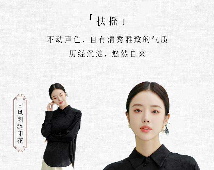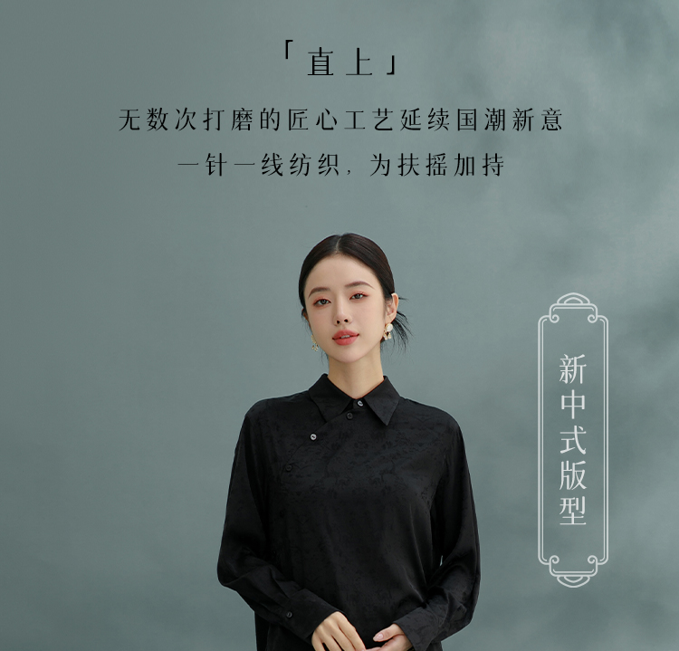 国风提花黑色衬衫女2026春季新款百搭新中式高级感上衣