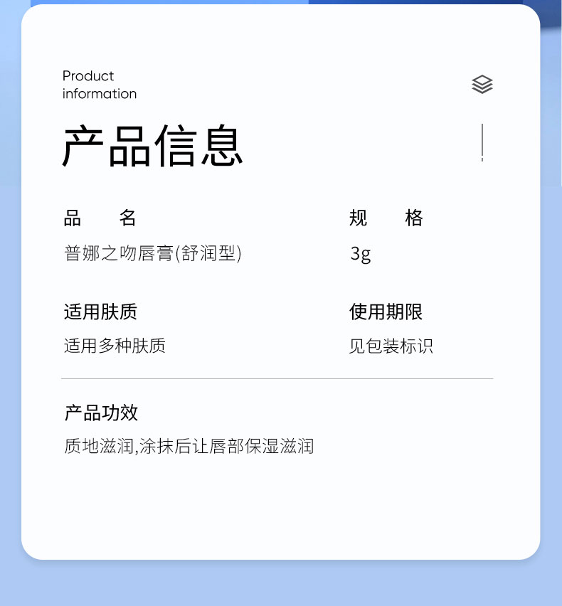 【品名】【超值三只装】俄罗斯原装进口普娜之吻 润唇膏 滋润保湿 4g/支 【规格】白色(倍润型) 蓝色(舒润型) 白色*3、蓝色*3、白色*2+蓝色*1、蓝色*2+白色*1 【产地】俄罗斯 【保质期】 【发货包装】独立包装盒 【发货地】广东省深圳市 【发货快递】中通,圆通 【不发货区域】西藏、港澳台 【补邮费地区】新疆+10元 【发货时效】48-72小时,周末节假日顺延 |