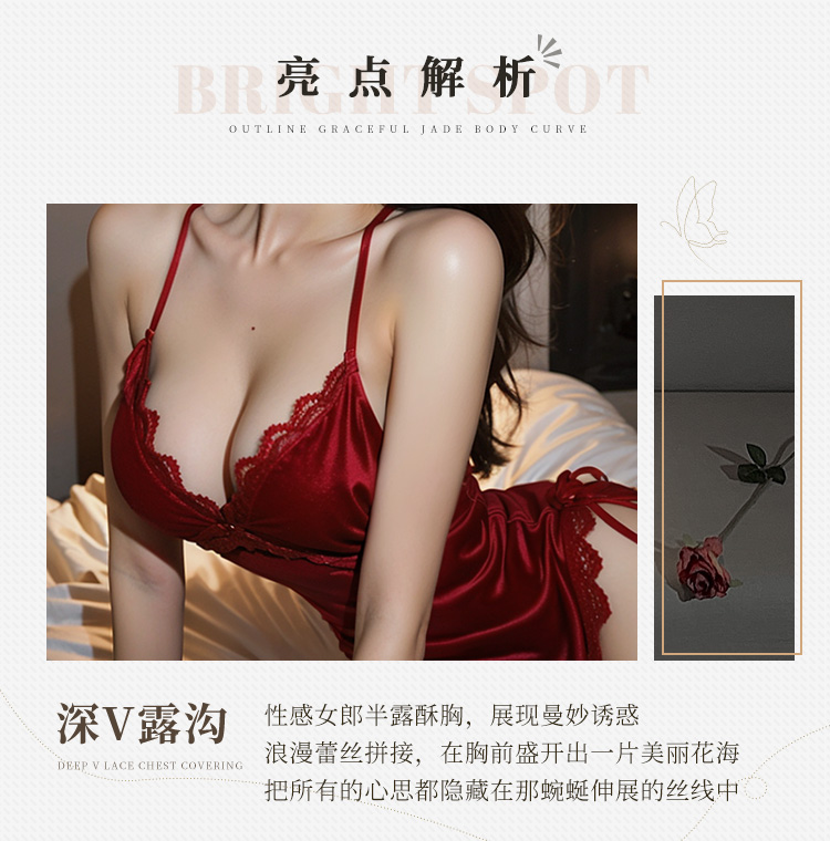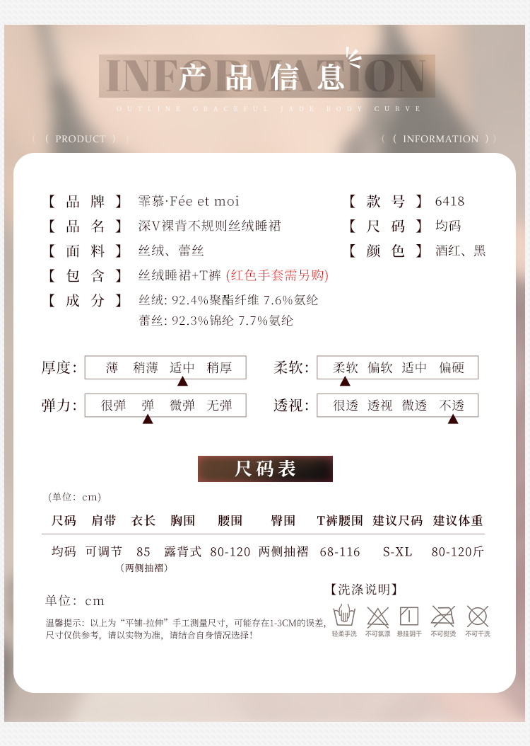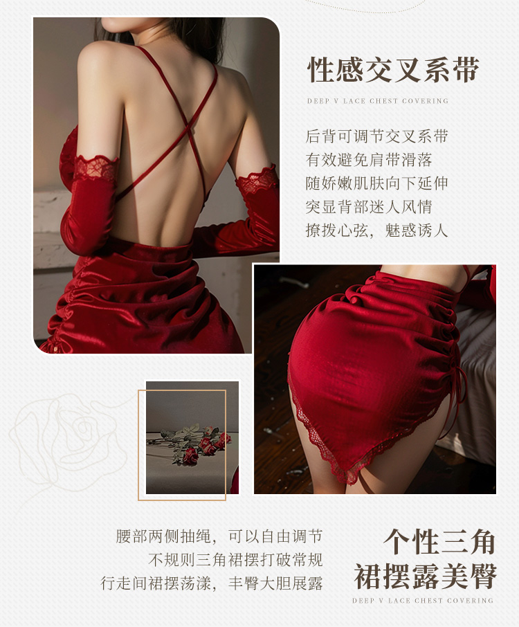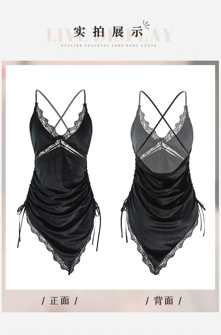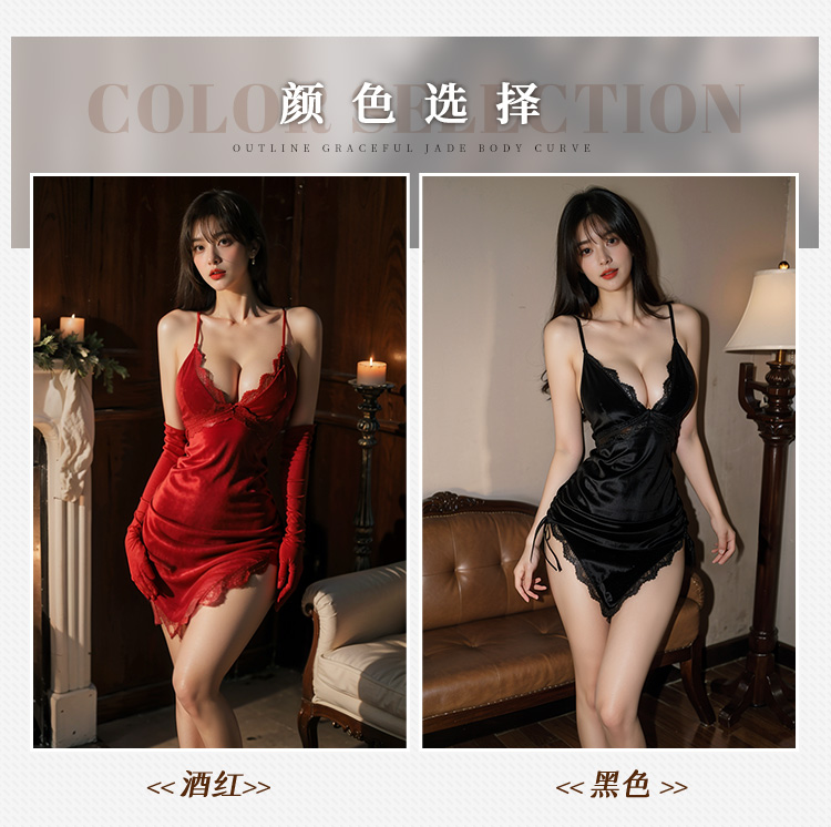 深V裸背不规则丝绒睡裙6418