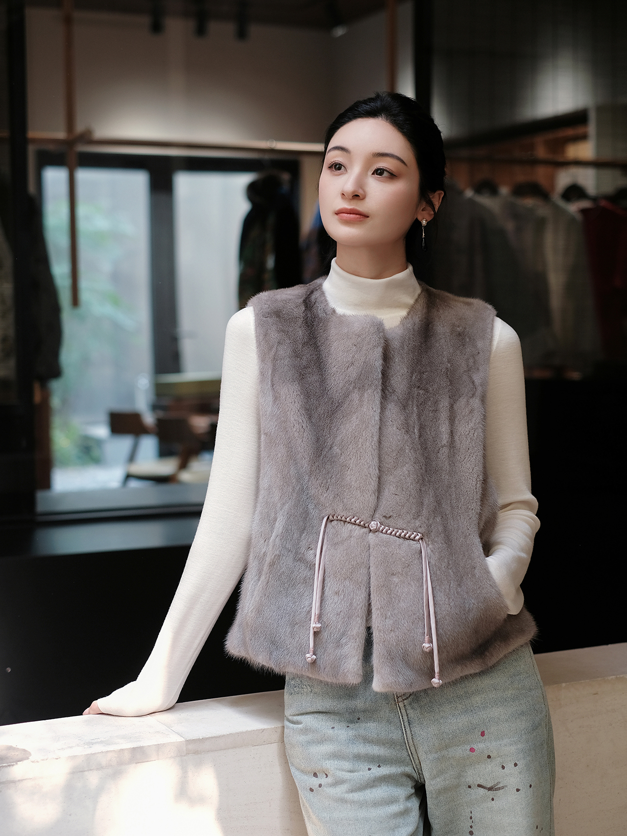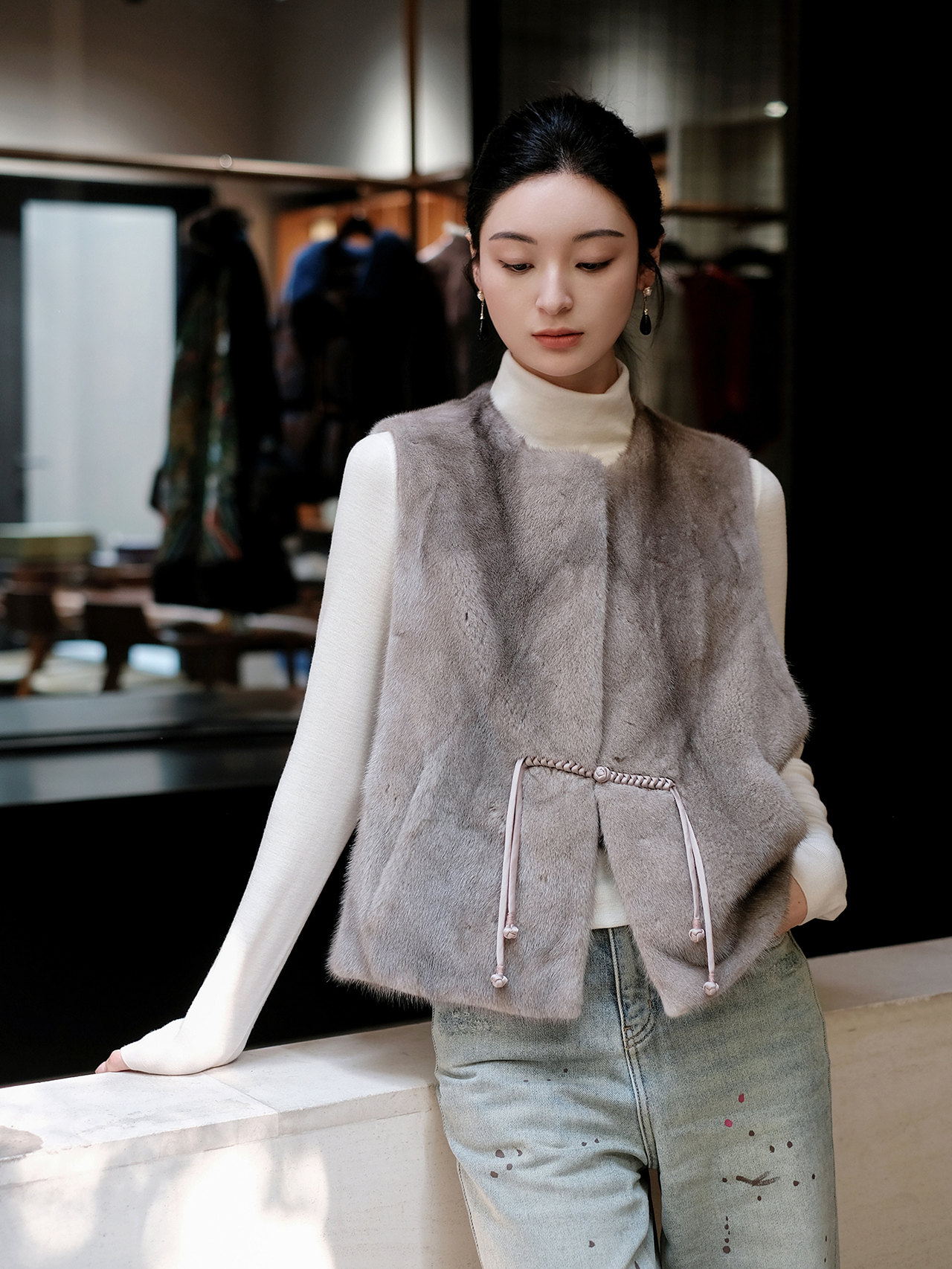 盛唐婧 | 新中式进口水貂盘扣马甲-灰色