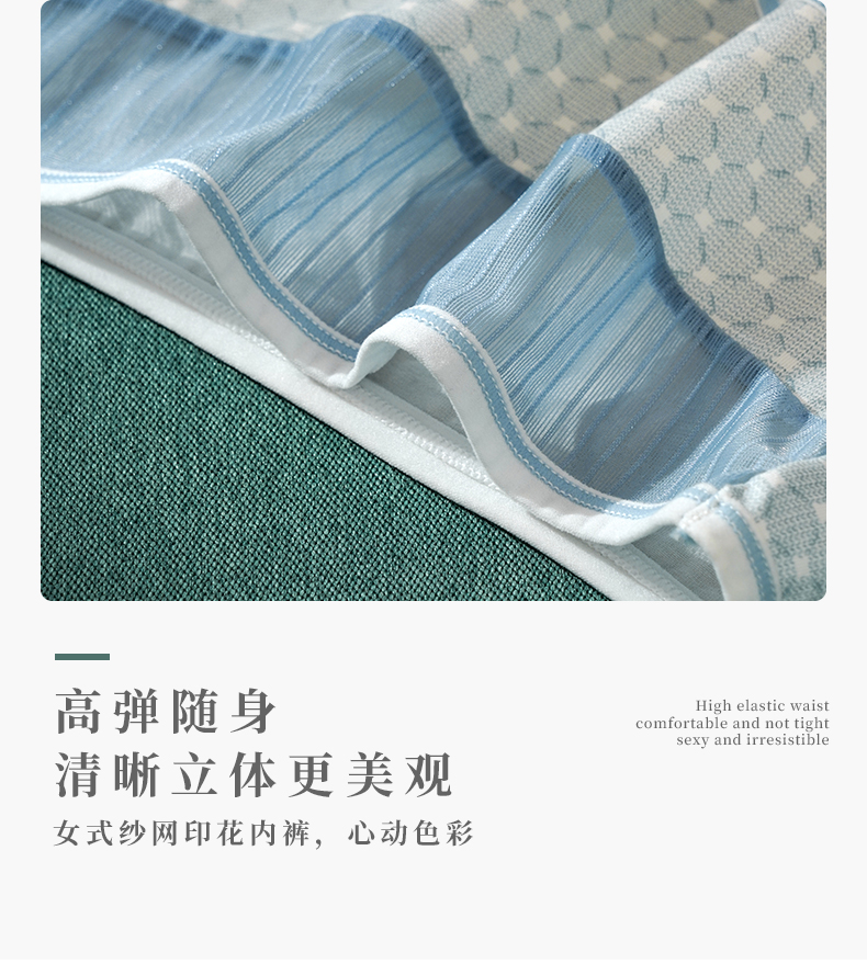 雅黛丽女士内裤性感网纱腰头纯棉底裆中腰平角裤4条装底裤DYK03055(盒装)