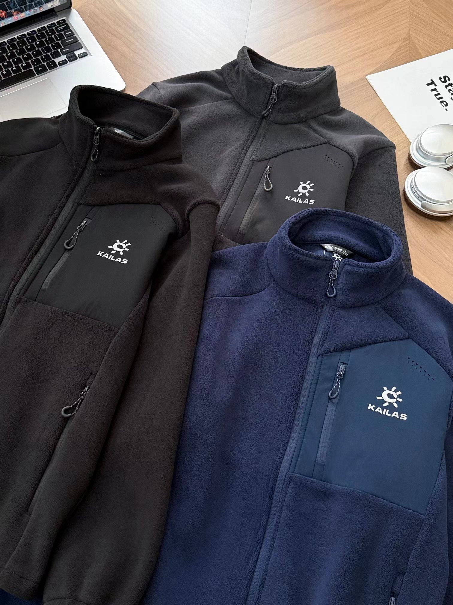 秋冬款上新立领抓绒外套,适用于登山户外生活场景的多用途立领抓绒外套 420高克重蓄热系列,万粒绒内里复合羊羔绒,面料带有导电丝纤维 ,具全面抗静电功能,减少冬日静电痛和粘尘,提升舒适性 面料万粒绒一百的聚酯纤维 手感细腻,高密度厚实保暖 ,上身不臃肿 干练百搭 日常实用度高 胸口设计拼色网格口袋 ,无痕压胶拉链,网格拼布门襟挡风设计,衣身胸口拼接处采用四针六线高密度走线 细节品质处处在线机洗久洗不变形,万粒绒的优点在于细腻久穿还不易起球 ,一件可穿春秋冬三个季节 ,都市通勤 轻户外休闲系列闭眼入!