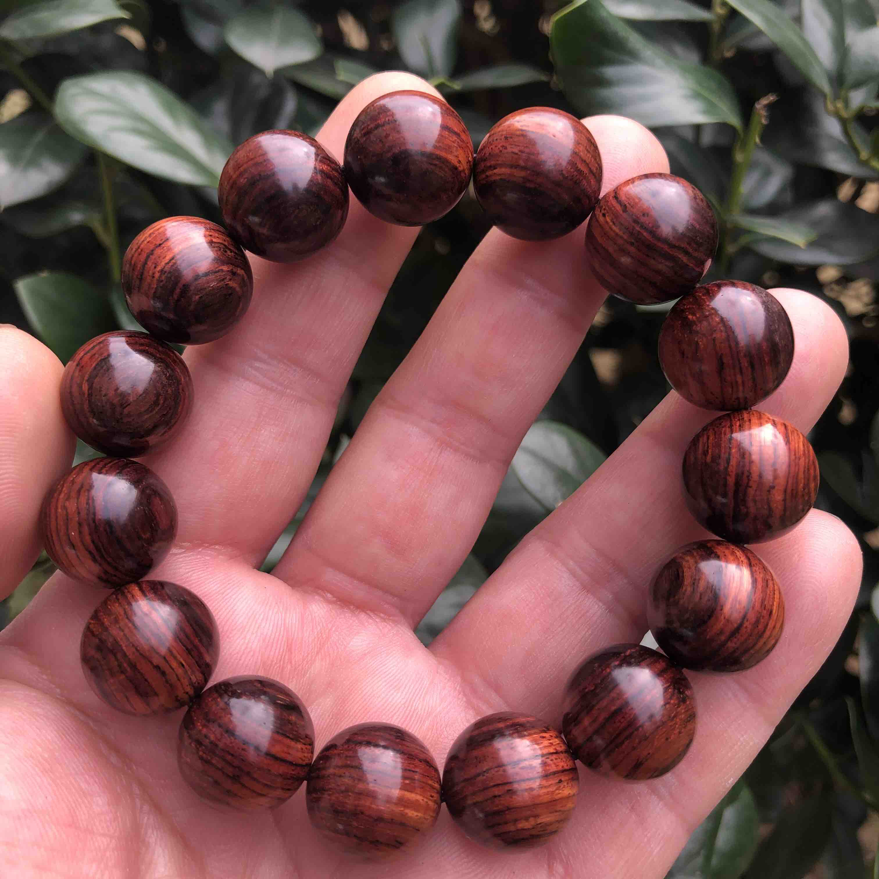 【青山特惠】1.5*15颗海南黄花梨紫油梨满纹老料文玩手串h112