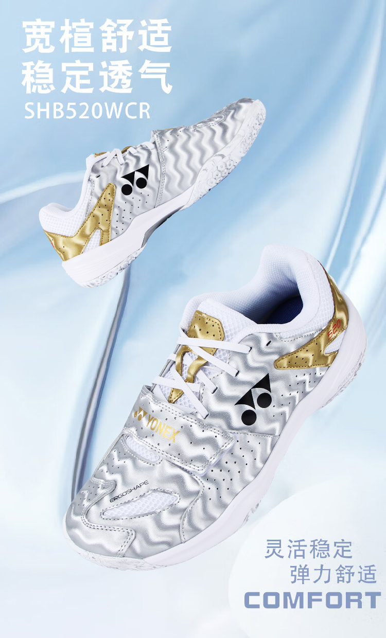 YY尤尼克斯YONEX羽毛球鞋男女防滑运动鞋SHB520WCR宽楦新款减震球鞋