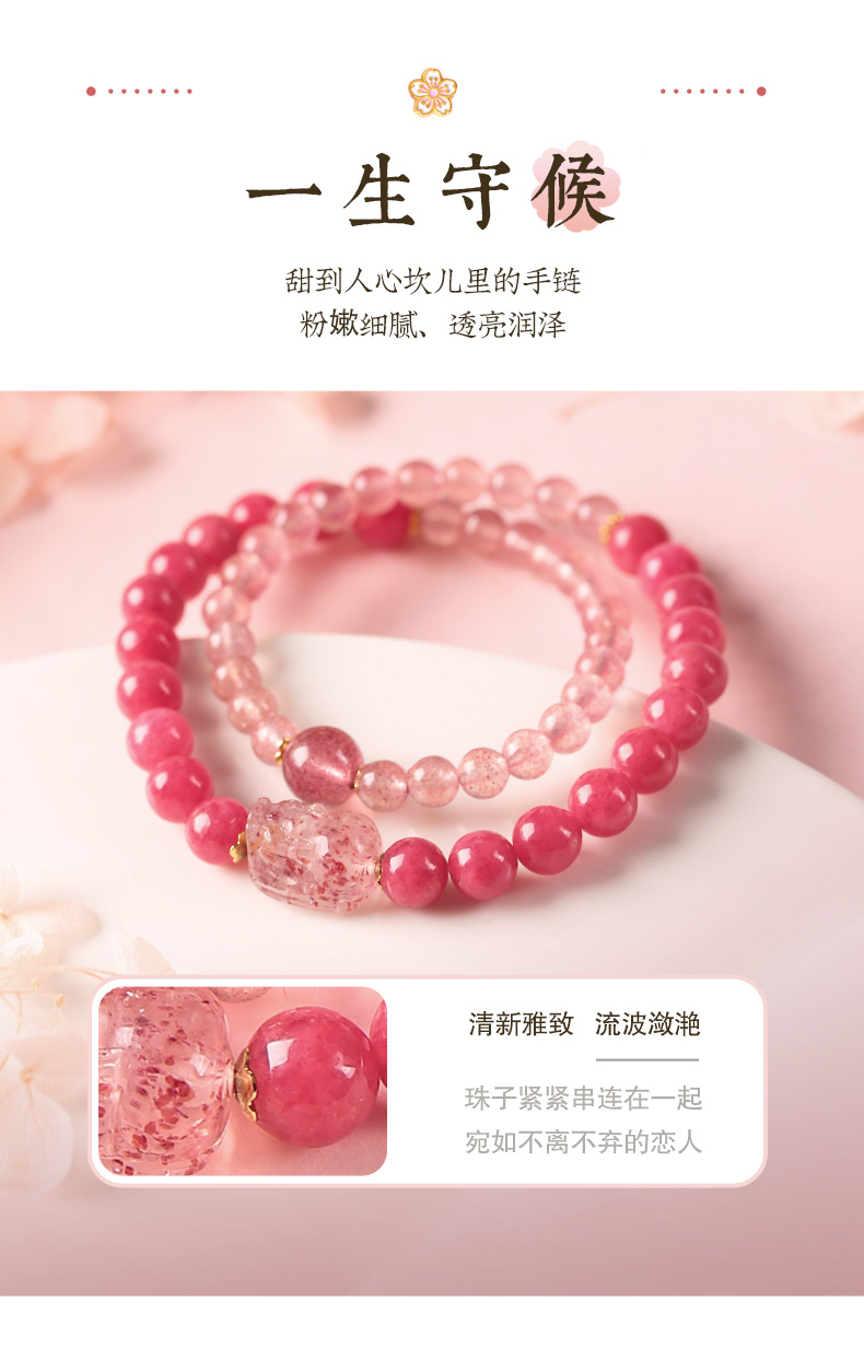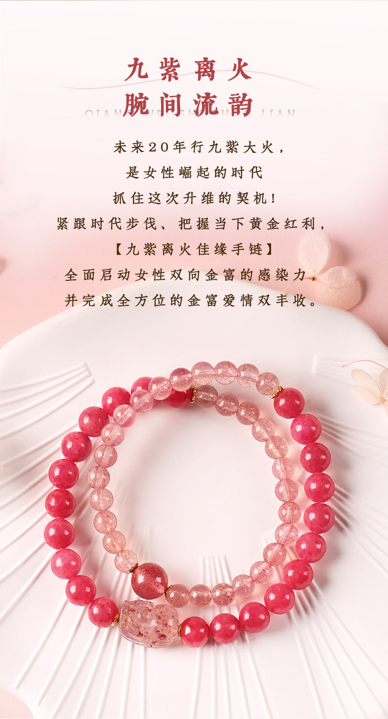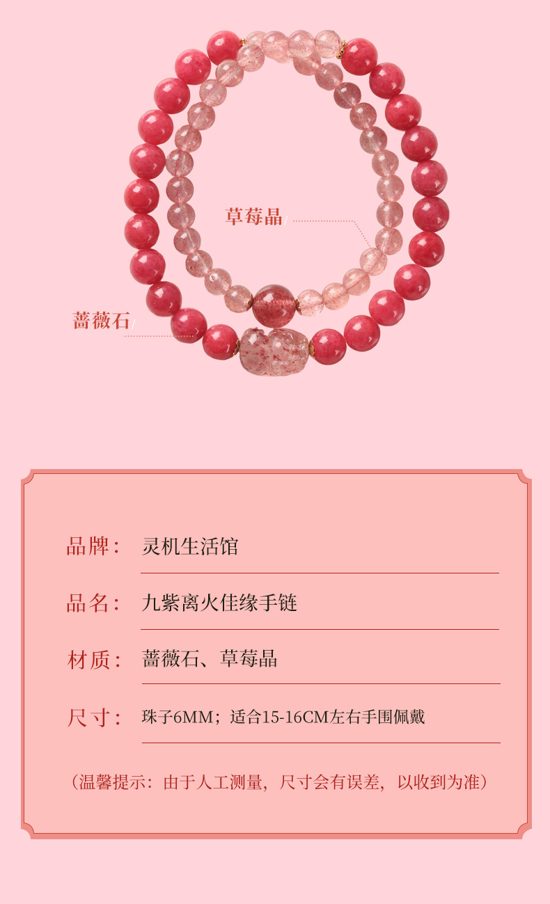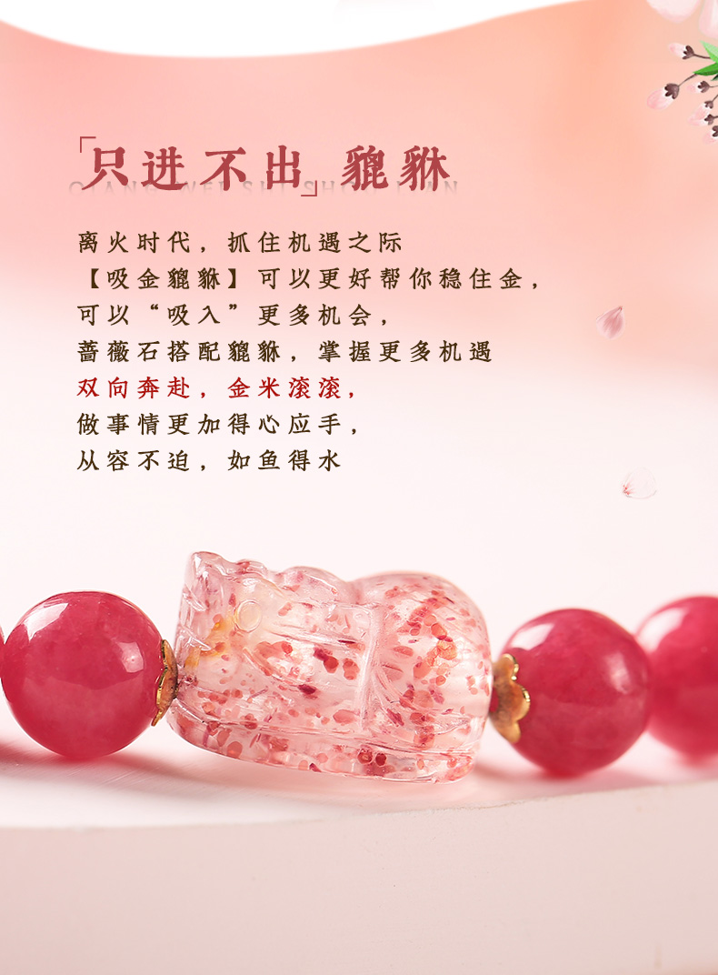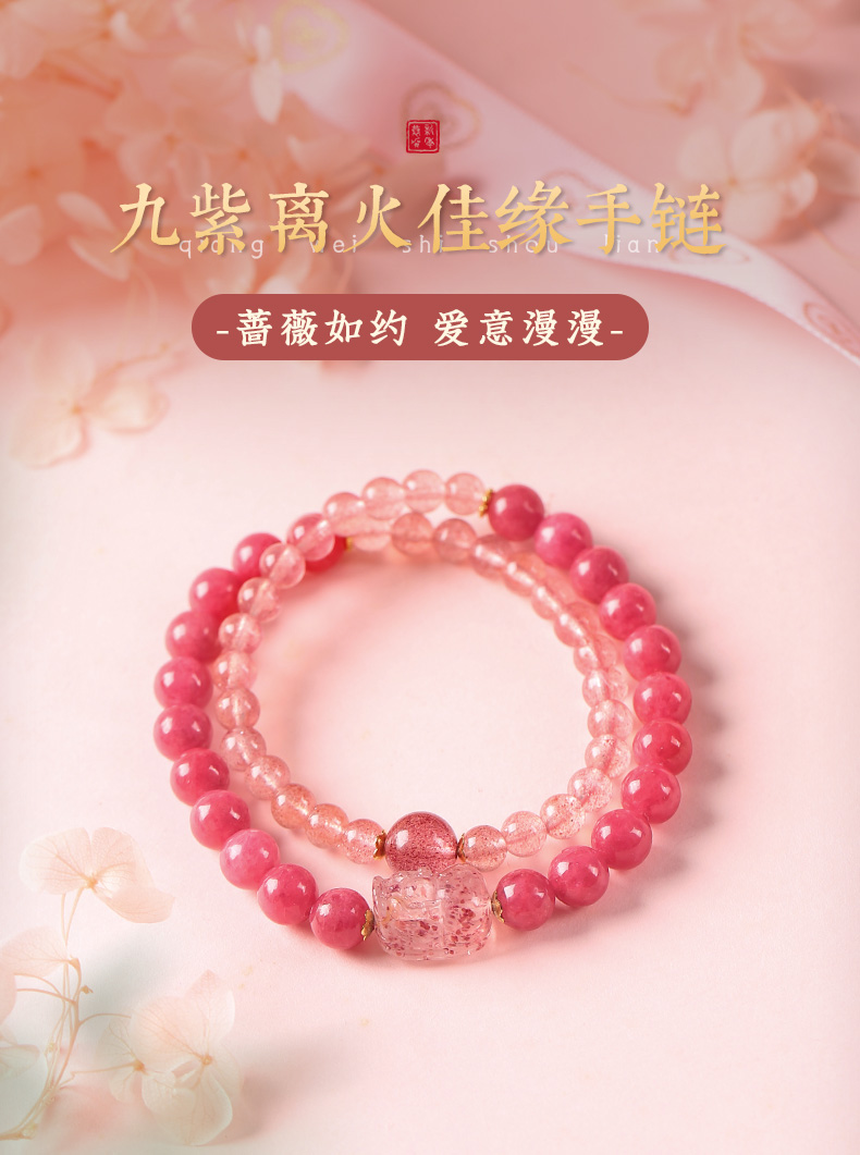 【姻缘】灵机生活馆九紫离火佳缘手链 草莓晶貔貅蔷薇辉石水晶手链