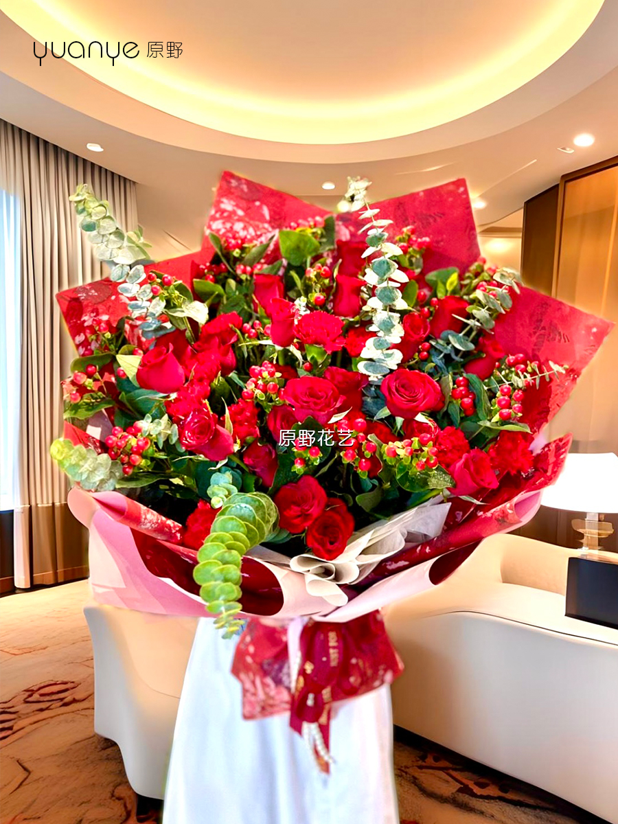 【福寿安康】玫瑰康乃馨红豆混搭花束