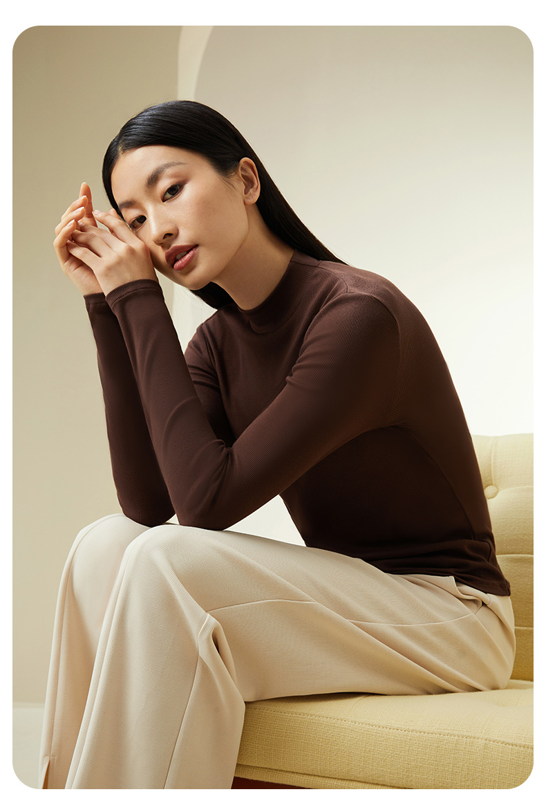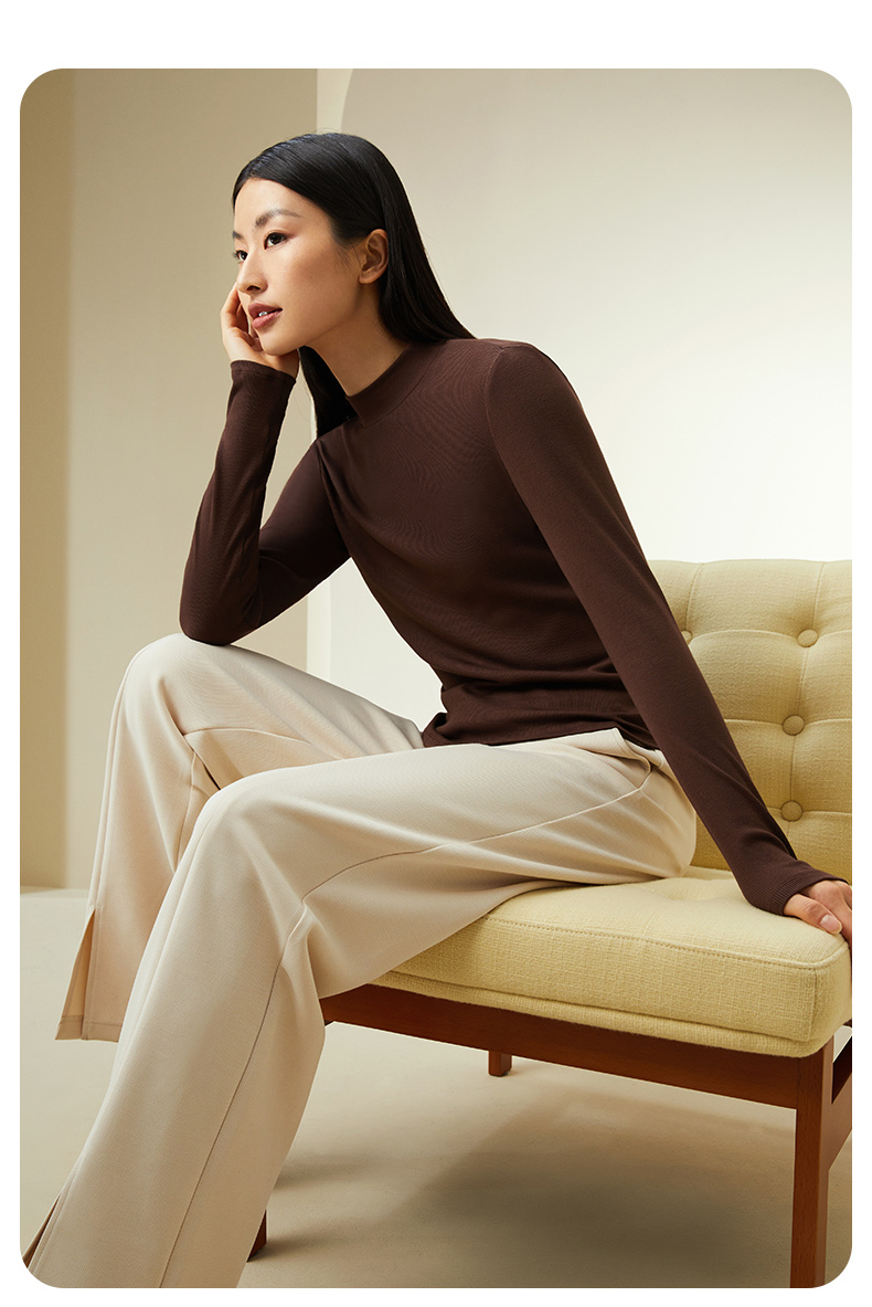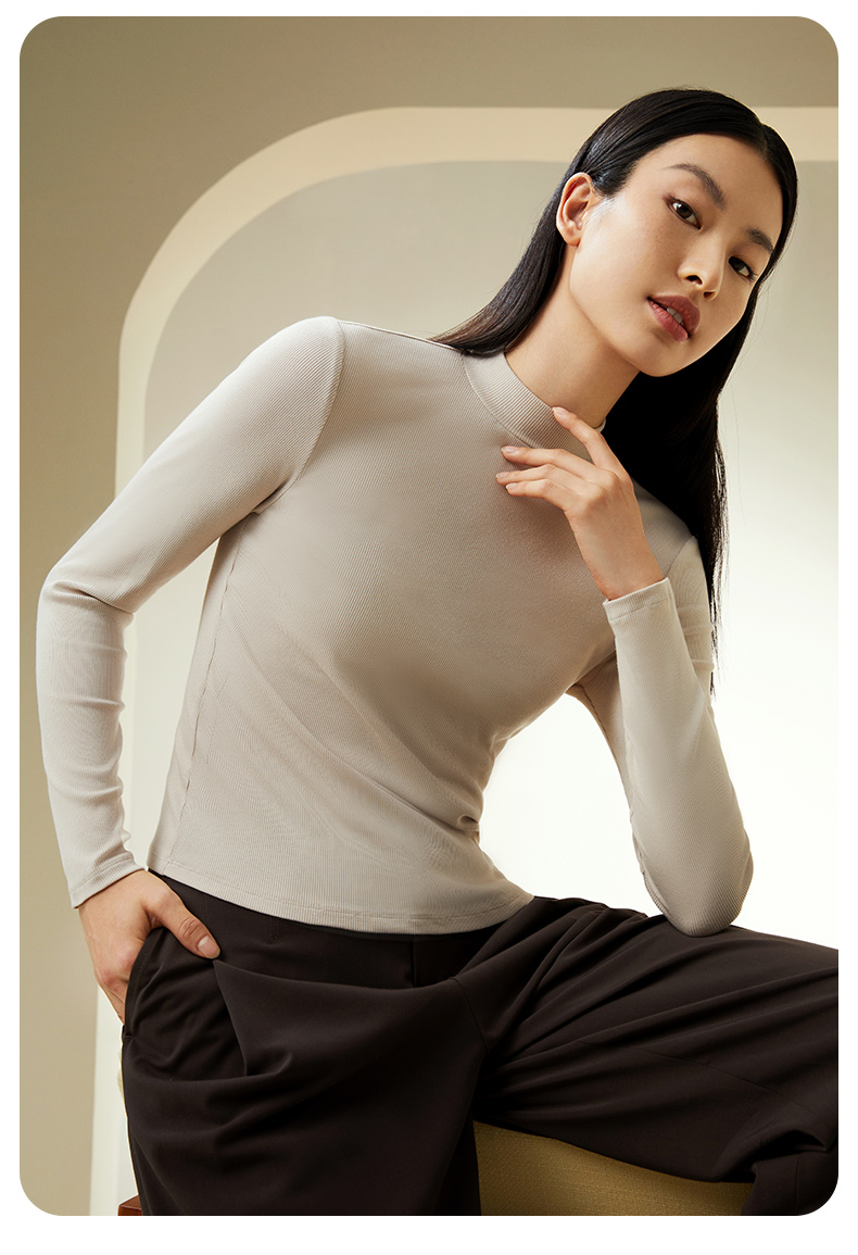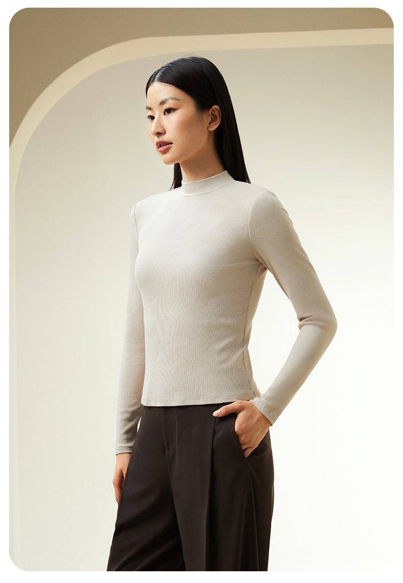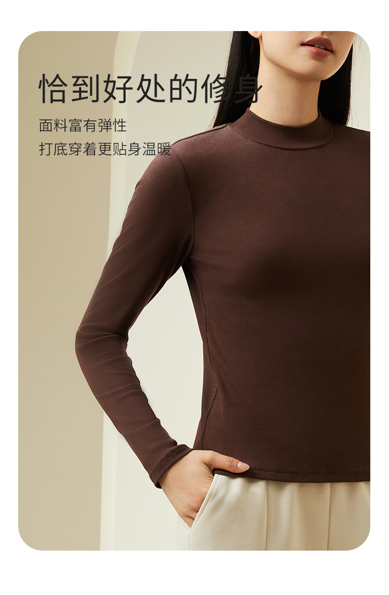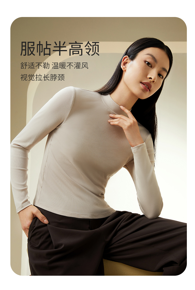 【贴身好温暖】金三塔桑蚕丝螺纹女半高领打底衫保暖上衣新品 NZFDC722