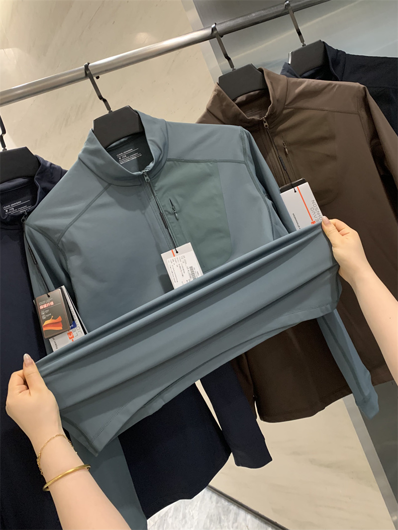 线下399!户外保暖一体薄绒PC蓄热暖绒内里半拉链休闲长袖T桖男卫衣!