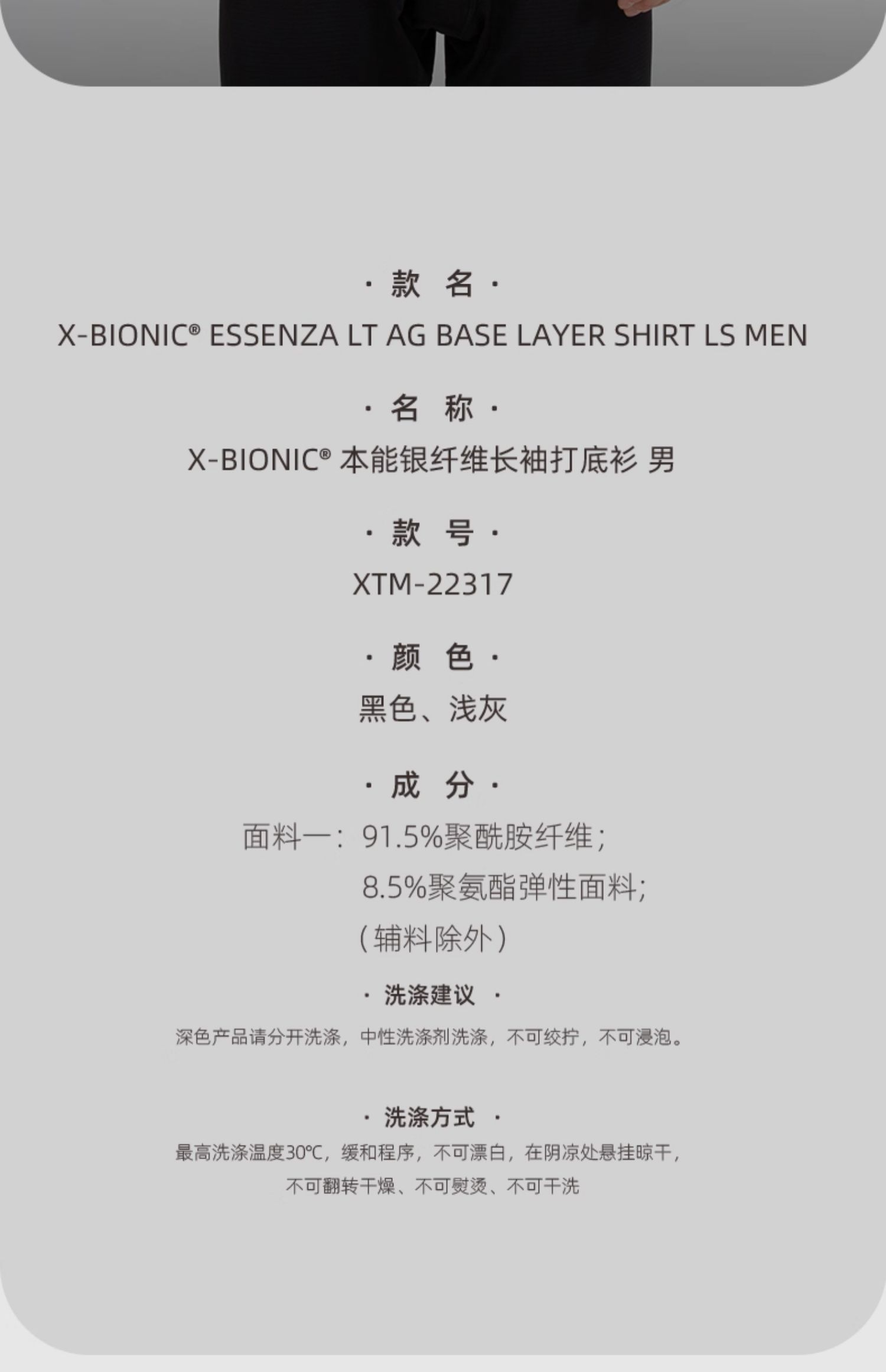 X-BIONIC X-BIONIC 本能银纤维长袖打底衫 男内衣秋冬保暖抑菌长袖上衣男款 22317