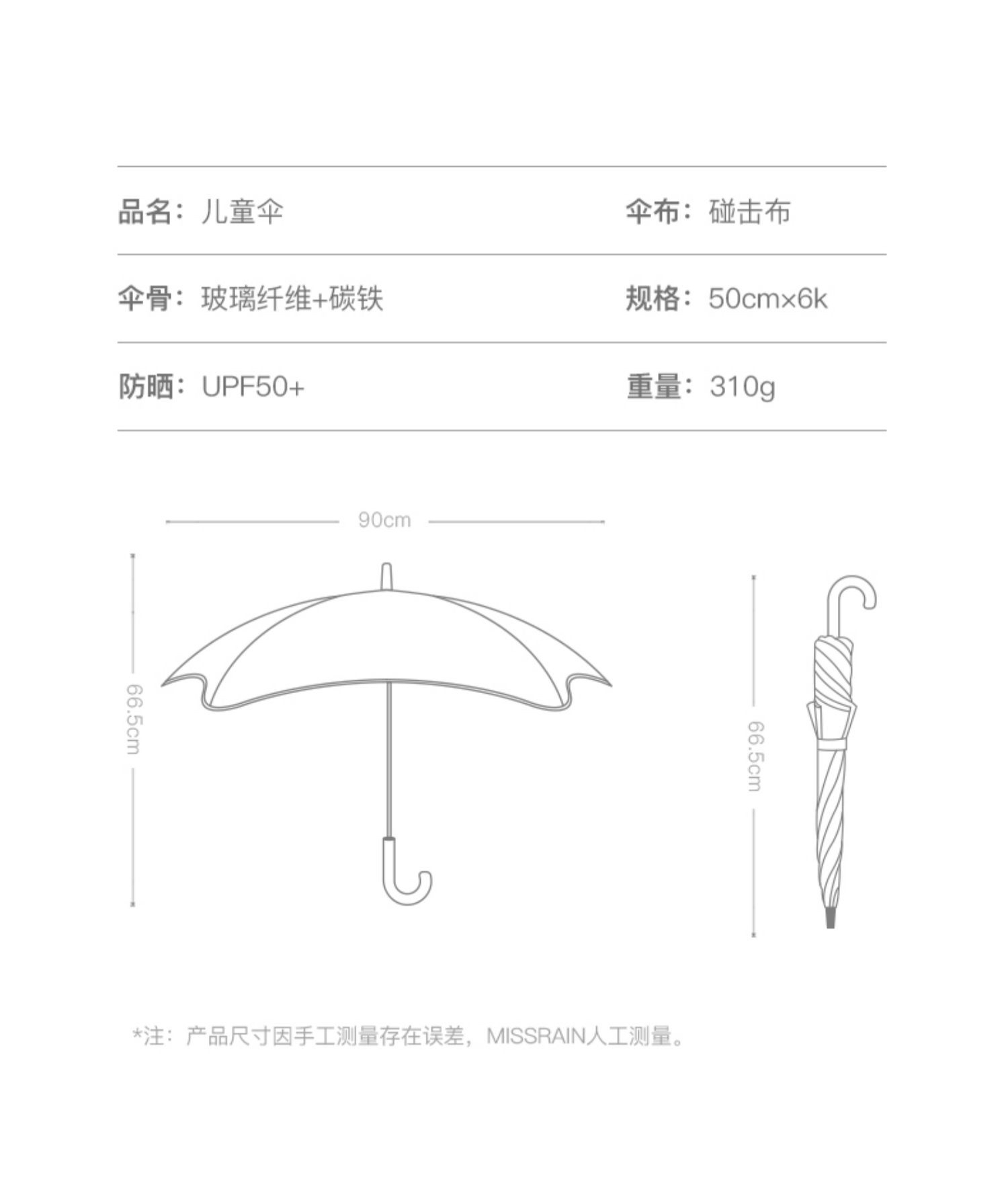 晴雨两用儿童防晒圆角雨伞