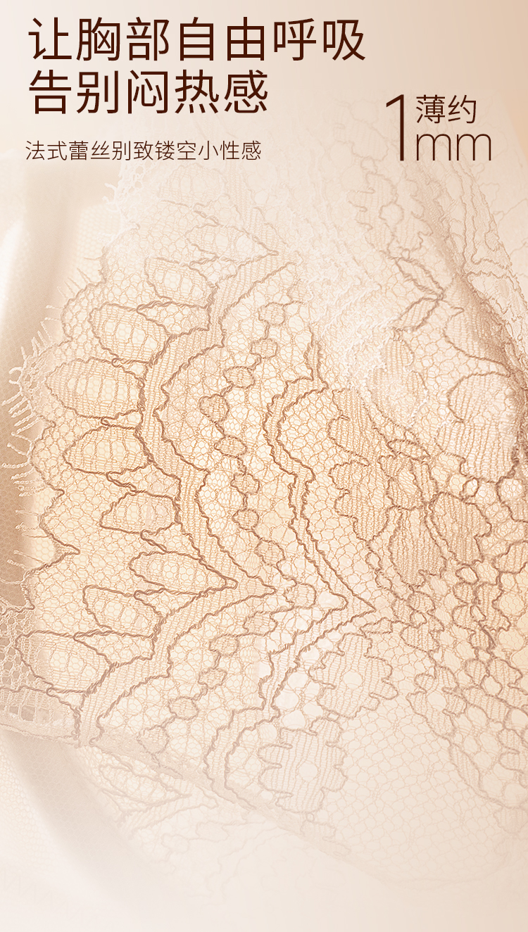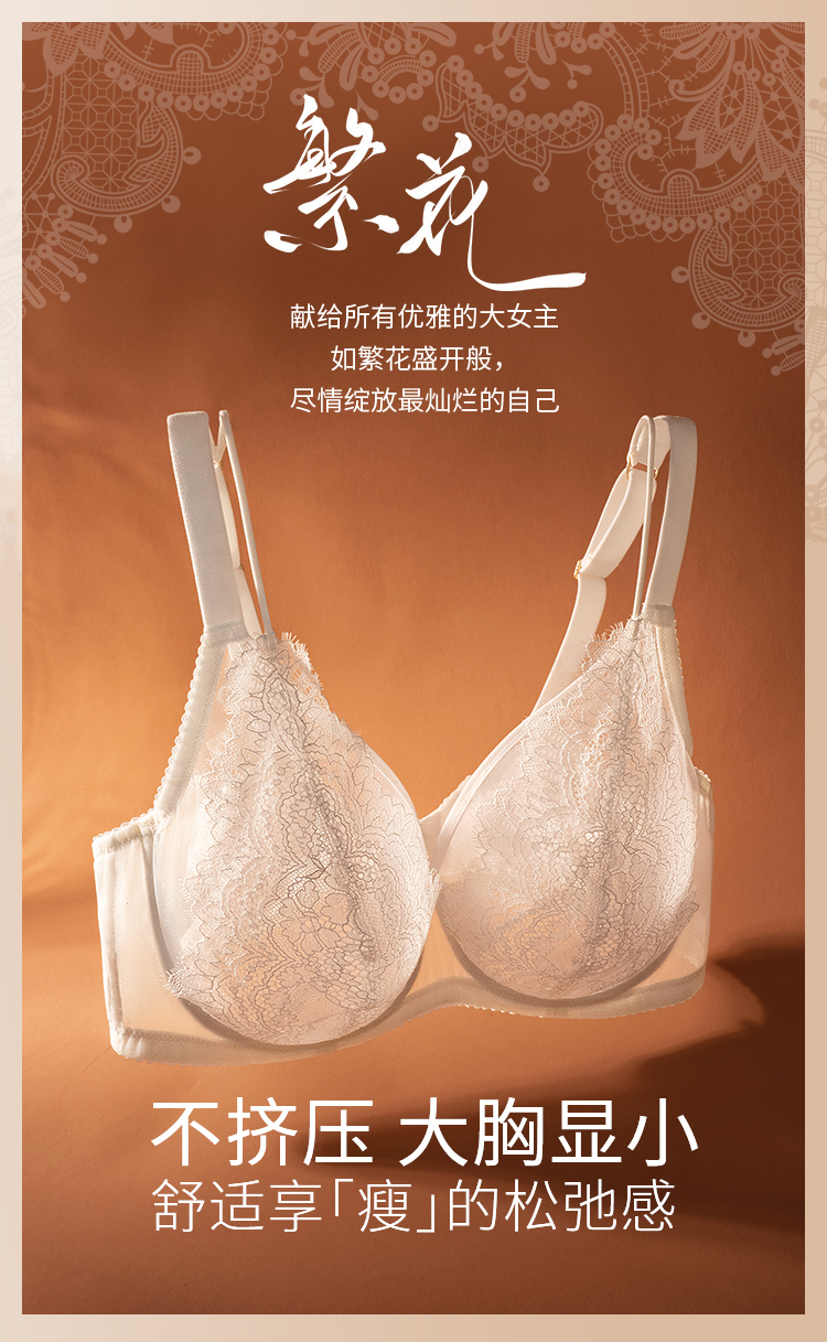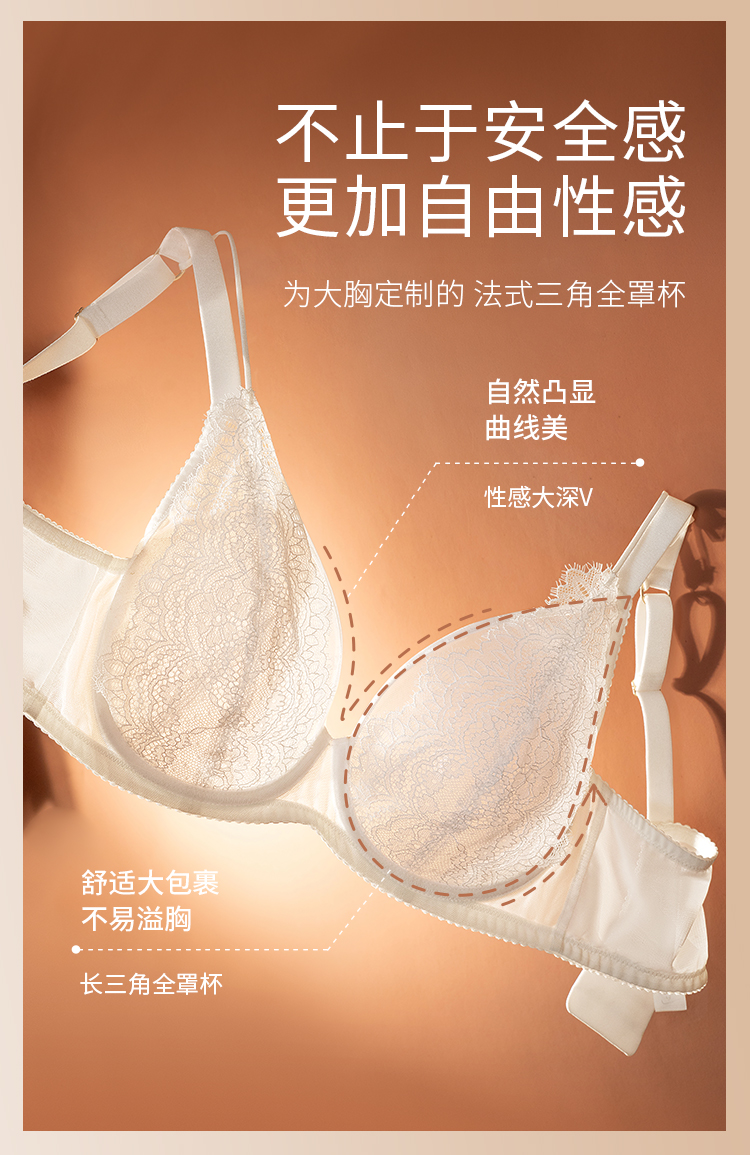 奶糖派繁花大胸显小全罩杯超薄透气文胸性感蕾丝法式深V内衣女