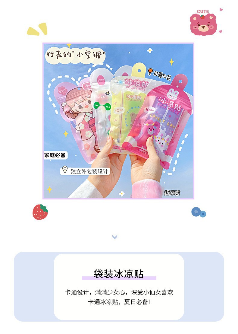 【冰凉贴夏季解暑提神神器】袋装可爱冰凉贴,降温降热冰贴夏季解暑提神学生散热贴成人,手机退热贴清凉贴夏日BI备QQ