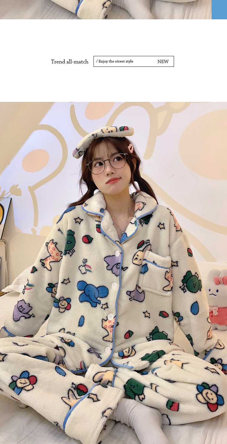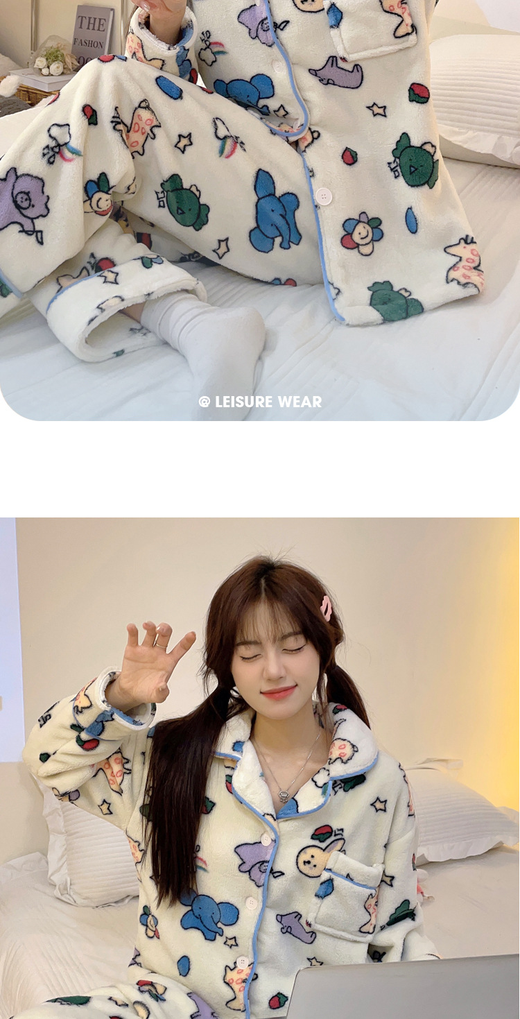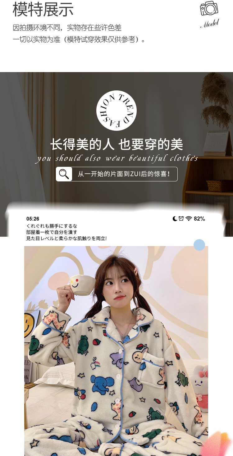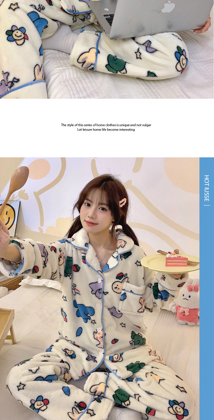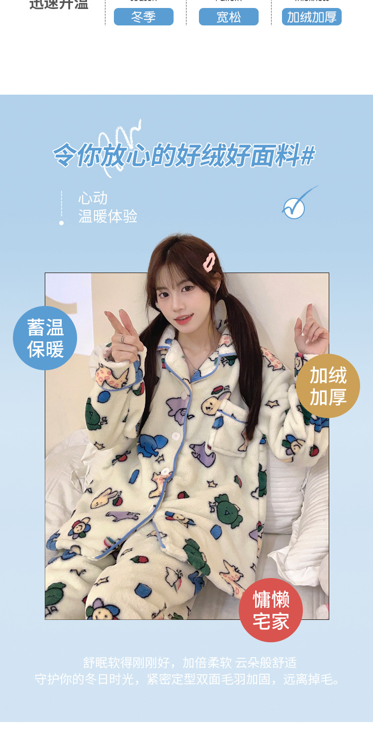 【加绒加厚!日系卡通法兰绒睡衣】细腻轻糯 快速升温 持久保暖!可居家可外穿,可爱女款秋冬季长袖长裤两件套睡裤家居服