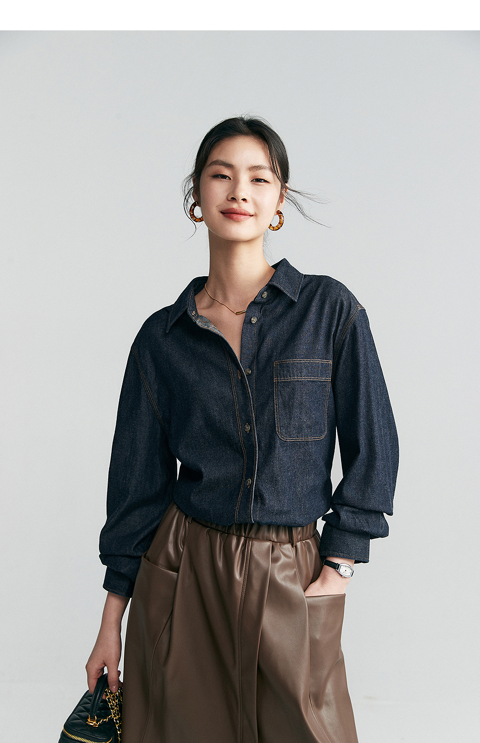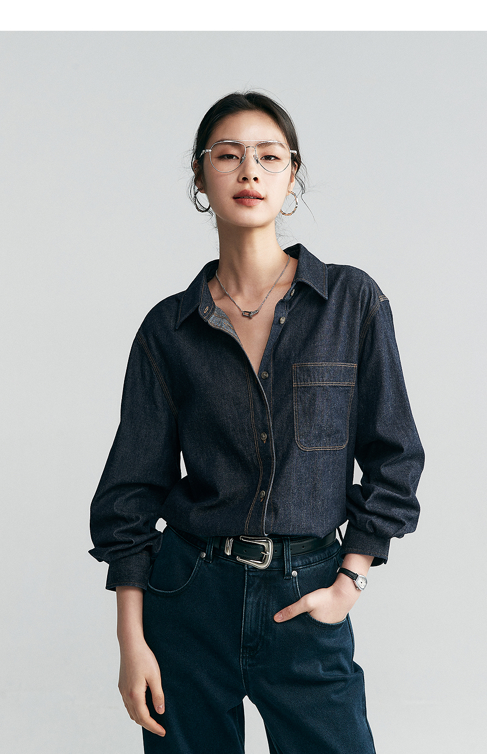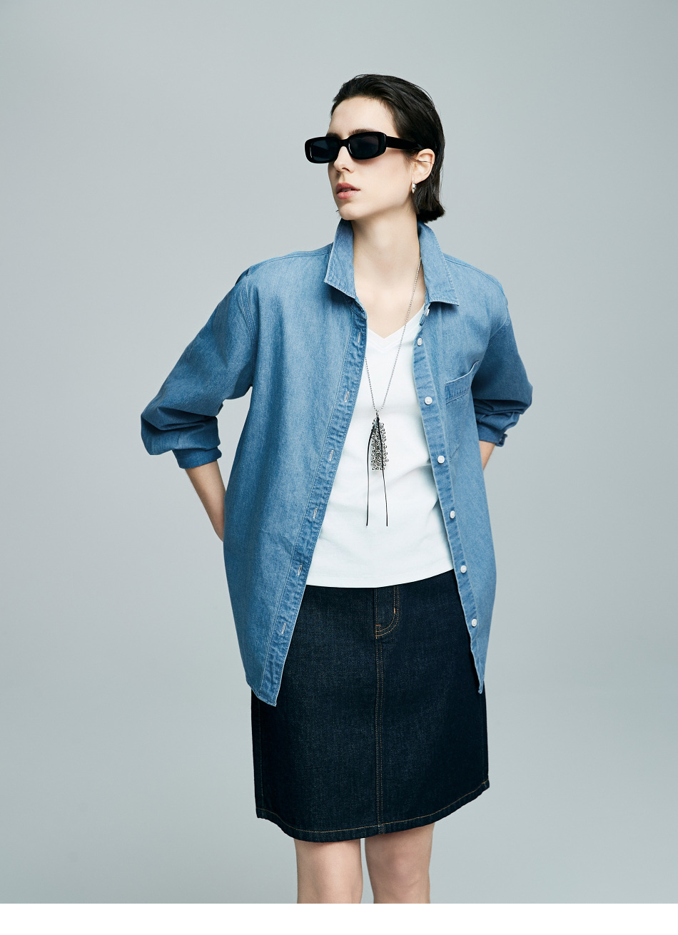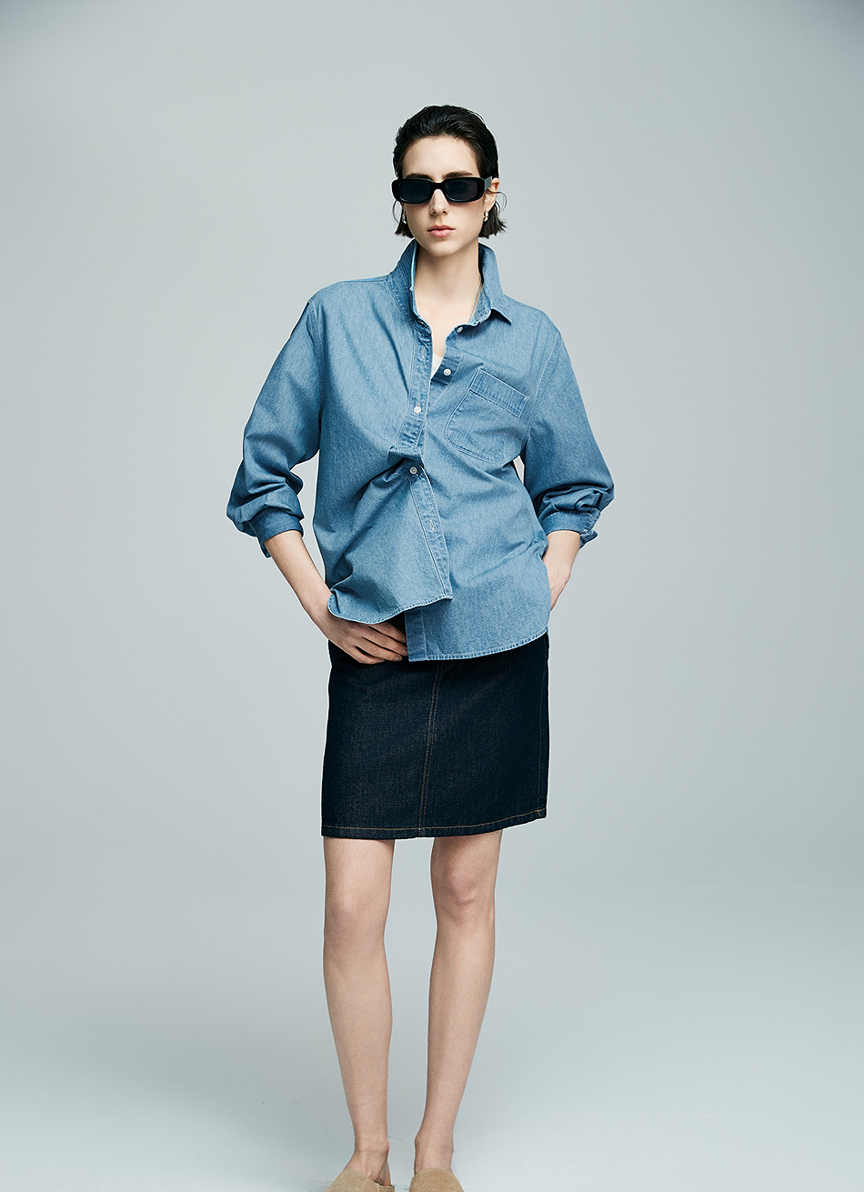 棉仓342604029-初棉环保有机棉复古牛仔衬衫