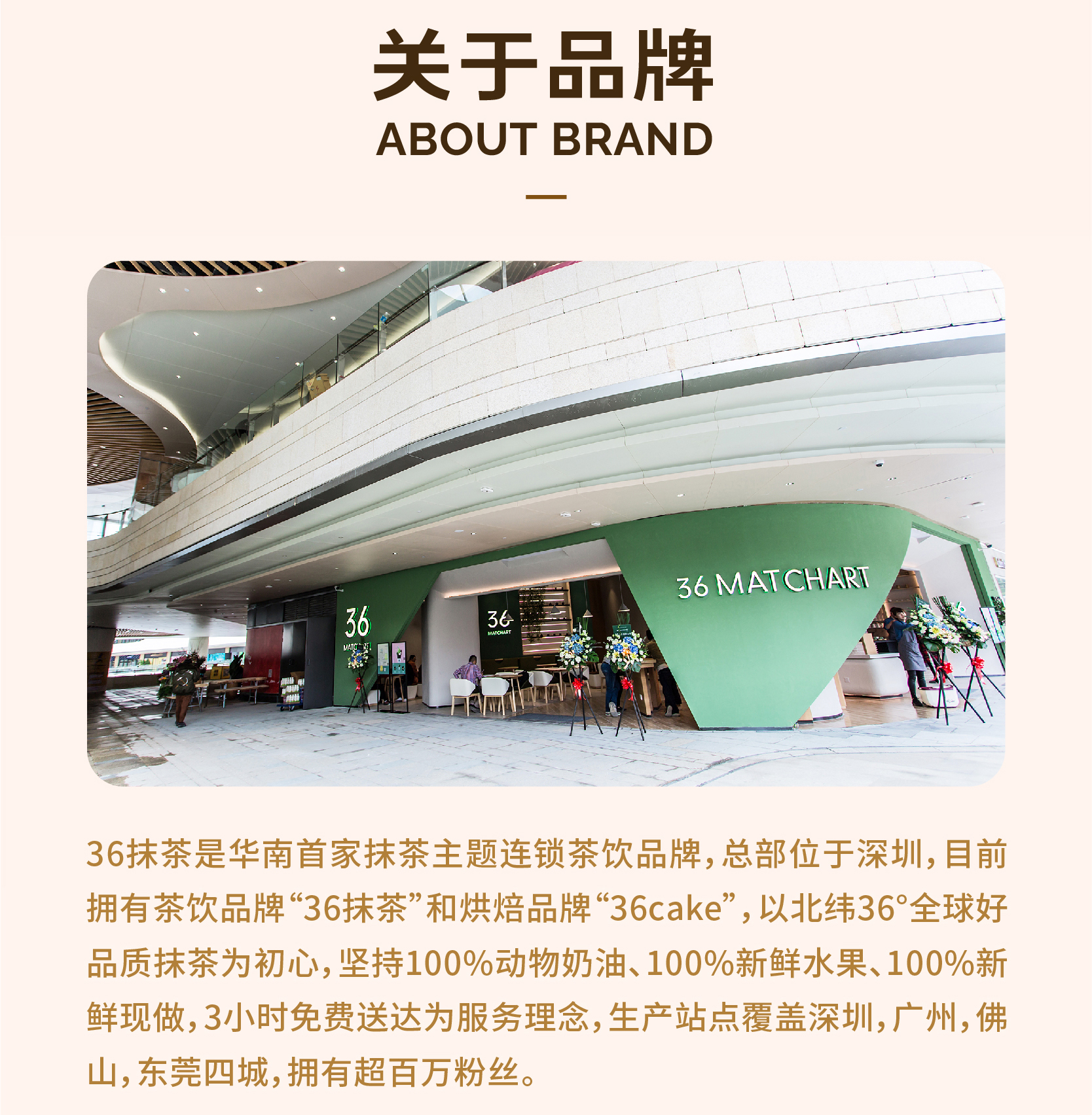 我们目前拥有36MATCHART和36cake两个品牌,主营抹茶甜品与新鲜蛋糕,深受数百万抹茶控和甜品控的拥趸。好吃安心,奶油只选法国铁塔。全城3小时免 费速达。客服热线400-016-3636