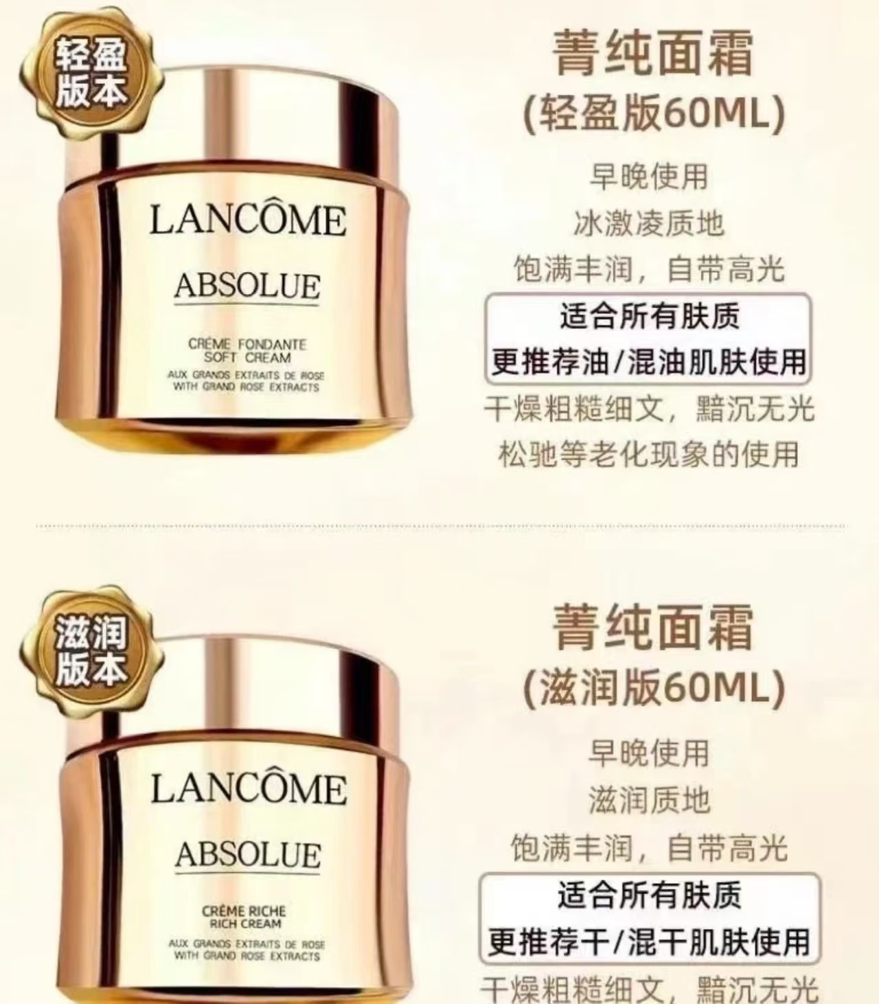 分为清爽/滋润,够拥有50倍浓度玫瑰活性因子+抗老王牌成分玻色因