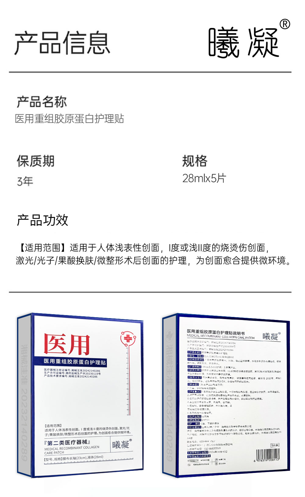 【一件100盒】曦凝-医用重组胶原蛋白护理贴,面膜面贴 医用冷敷贴