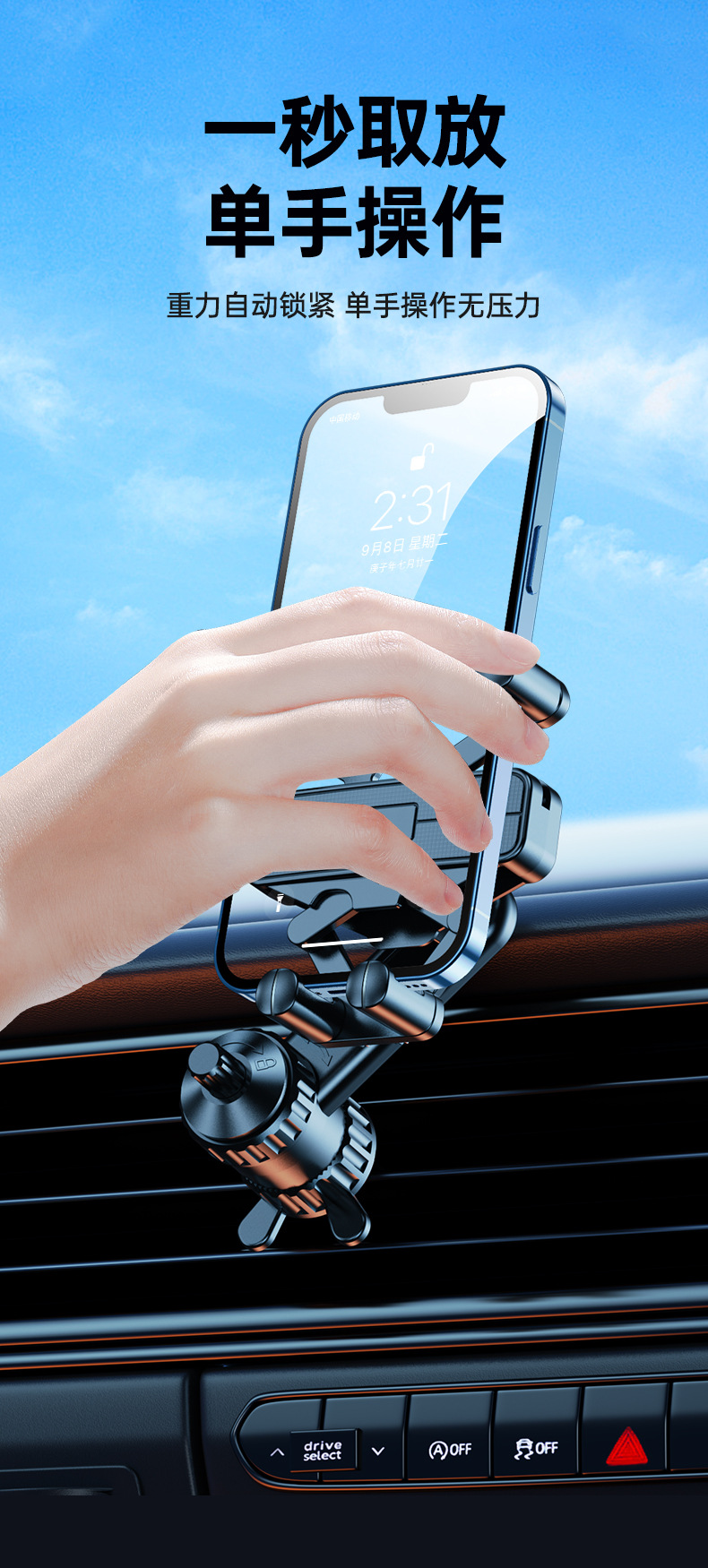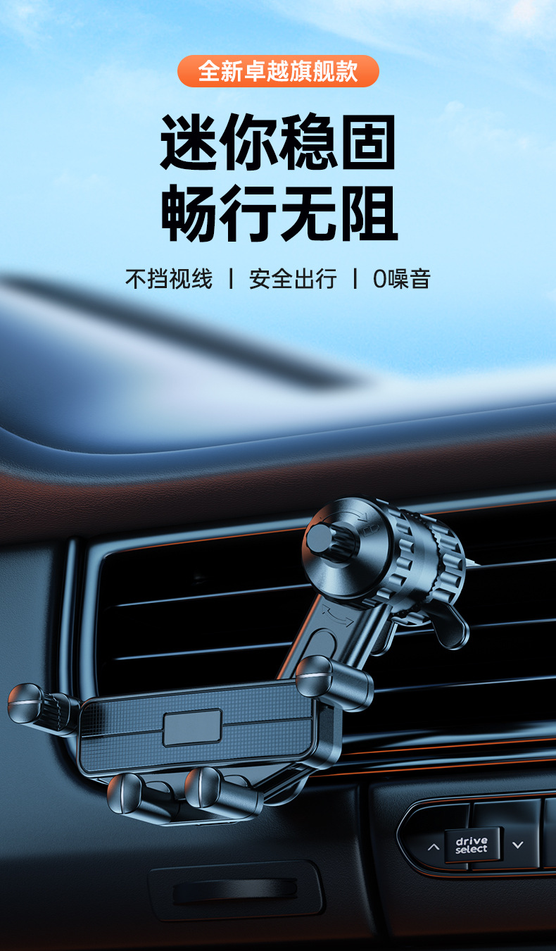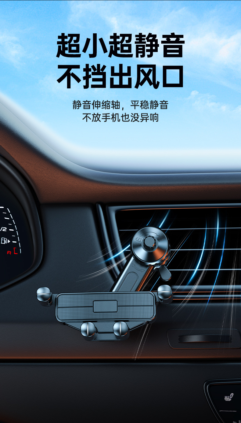 新款车载手机支架汽车出风口重力导航手机迷你隐形支架不 遮挡空调