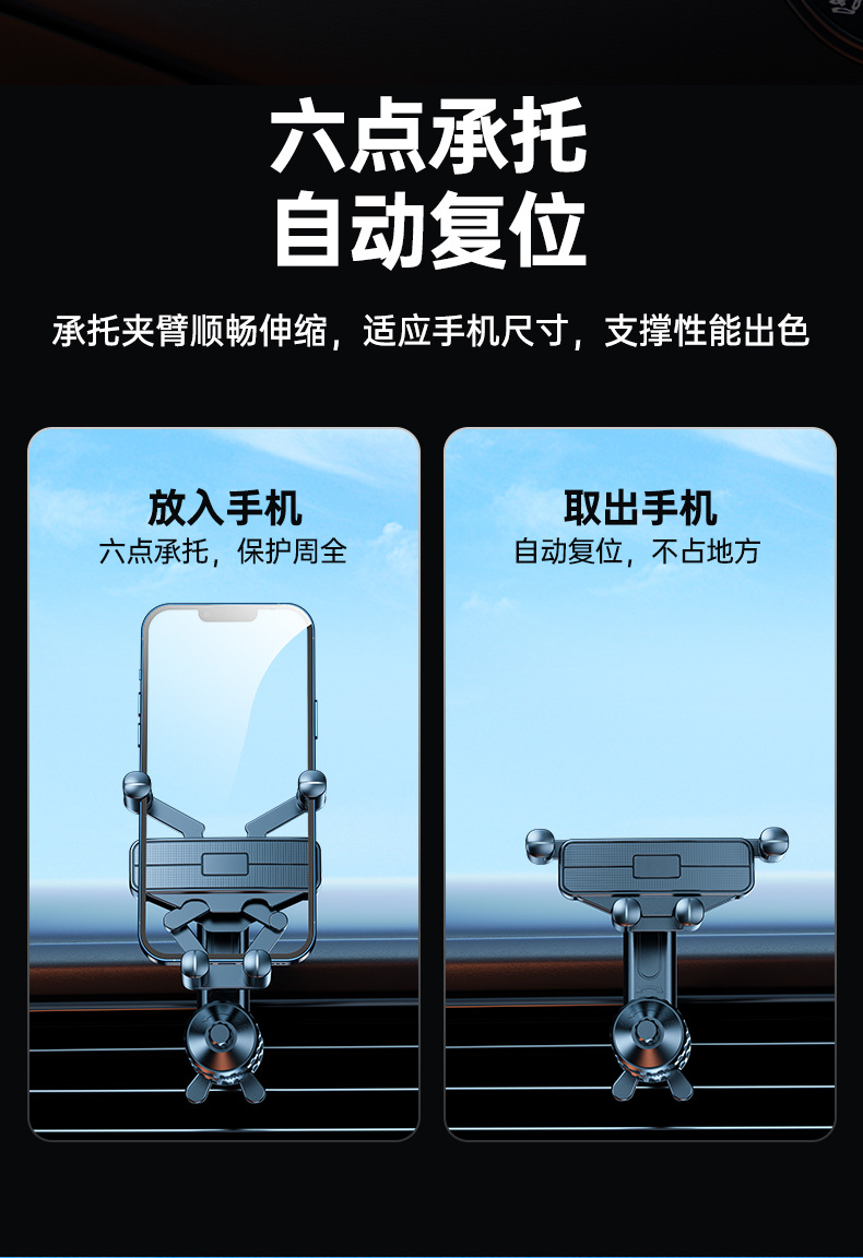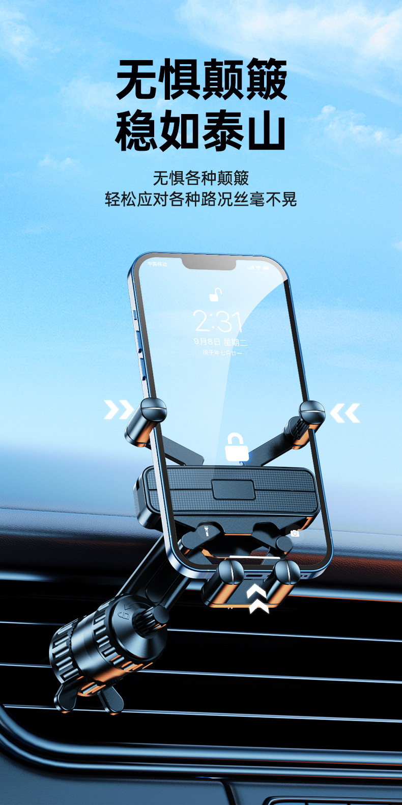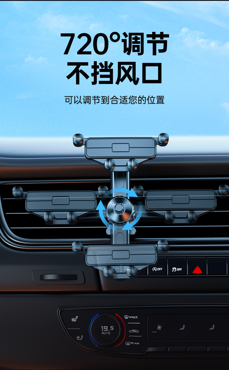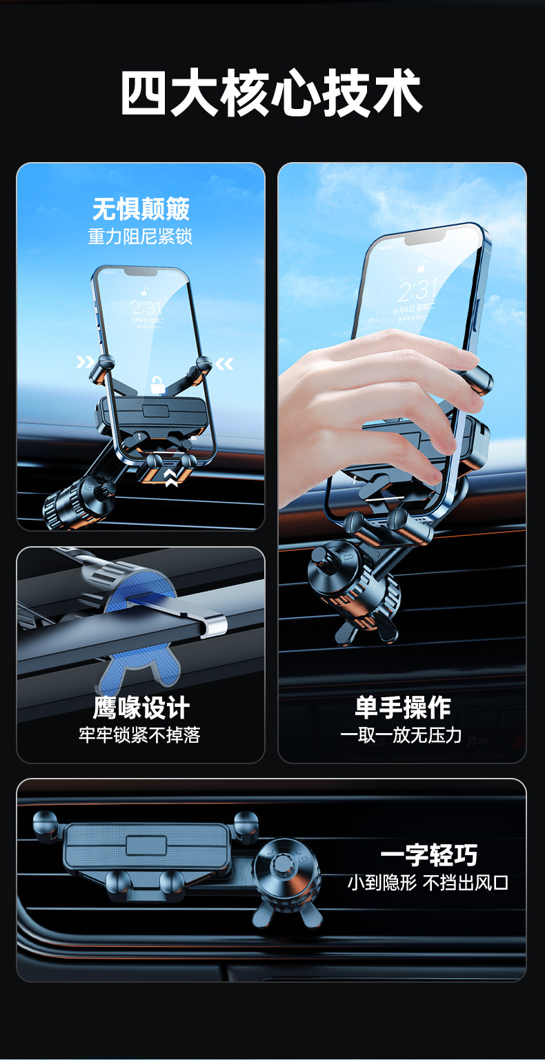 新款车载手机支架汽车出风口重力导航手机迷你隐形支架不 遮挡空调