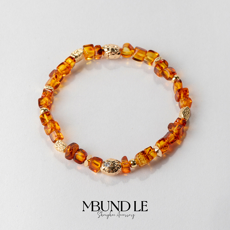 繁花似锦 花珀随型手链一条