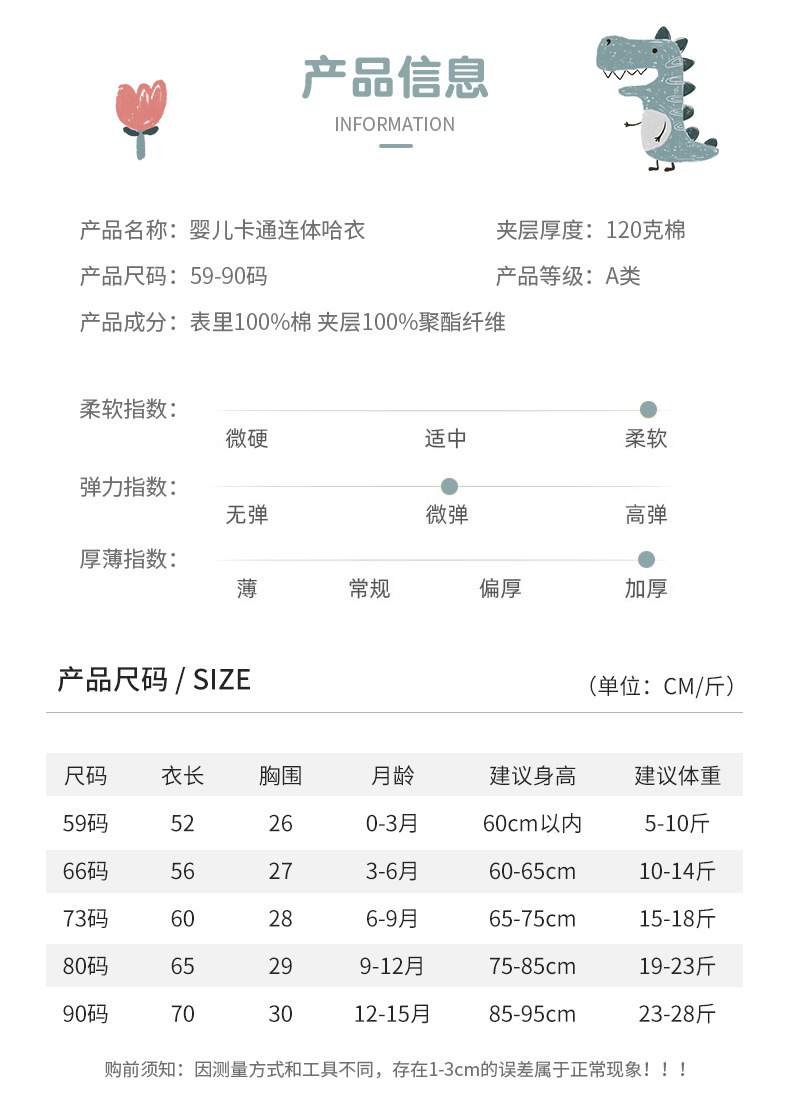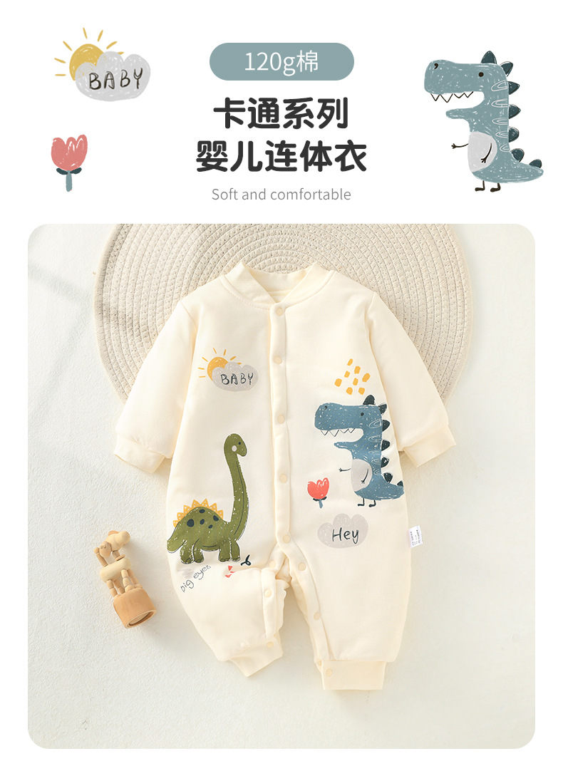 【15款】新生儿衣服卡通全棉无骨婴儿连体衣120g夹棉秋冬宝宝外出爬服哈衣