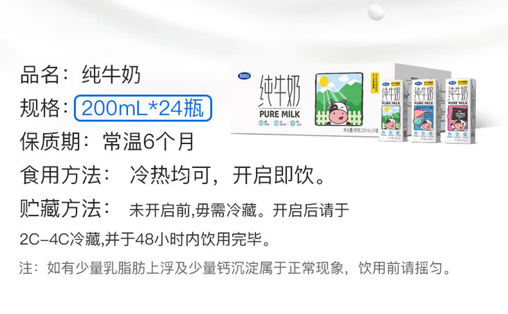 【整箱】完达山全脂纯牛奶200ml*24盒