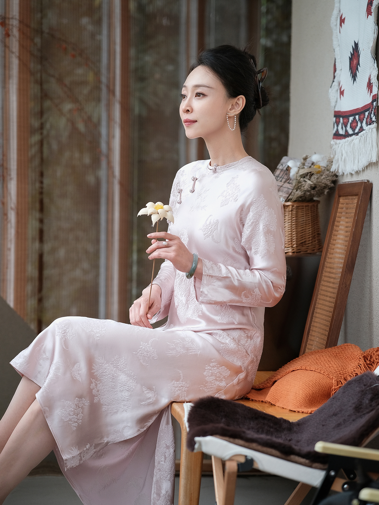 盛唐牡丹| 粉色梅兰竹菊旗袍裙