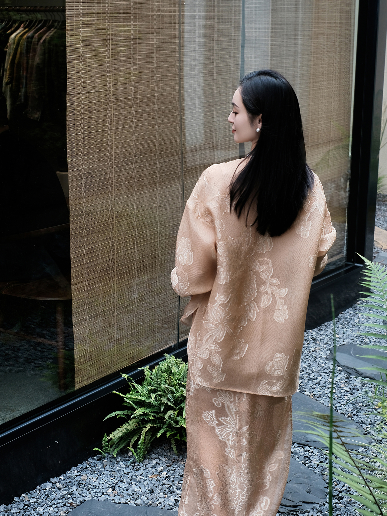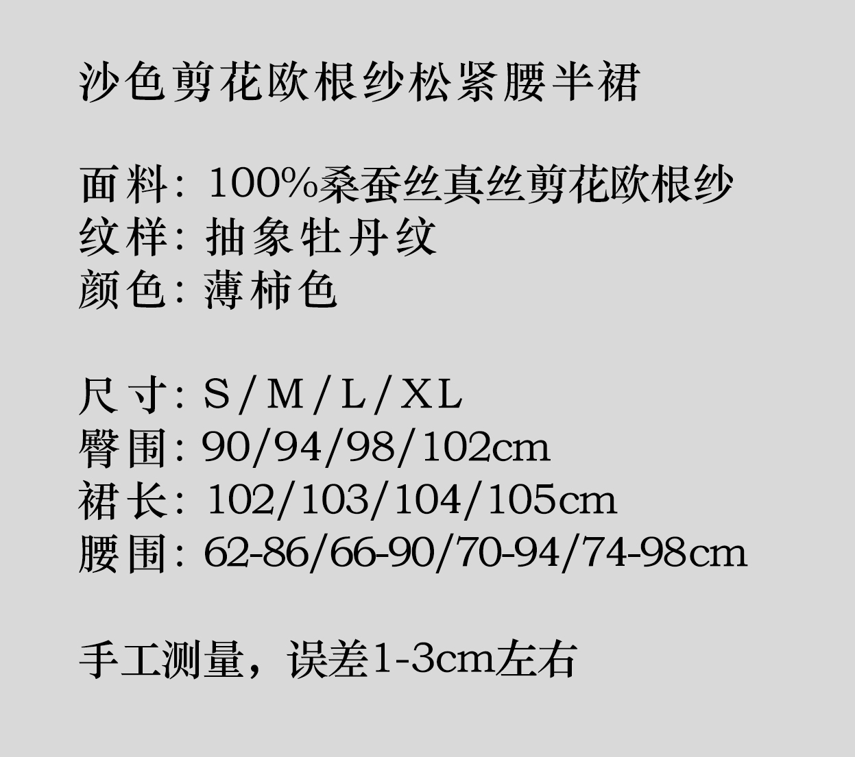 盛唐牡丹 |沙色剪花欧根纱松紧腰半裙